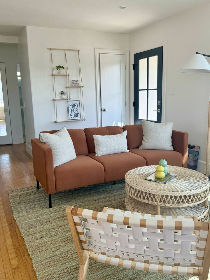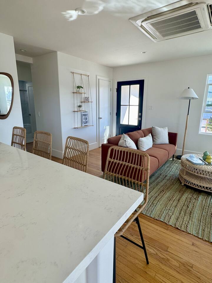 🌊 Surf-Inspired Retreat in the Heart of Downtown Oceanside *MONTHLY RENTAL* Available for stays of 31+ nights. A lease agreement and screening is required for all adult applicants. If you have any questions, don't hesitate to reach out. New Listing! Check out our reviews for other homes! ⭐️ ⭐️ ⭐️ ⭐️ ⭐️ Stay steps from the beach, coffee, restaurants, and local shops in this newly remodeled coastal getaway. This 2-bedroom, 1-bath home has been lovingly updated with a fun, surf-inspired design that captures the vibrant spirit of Oceanside — colorful, relaxed, and full of beach-town charm. Inside, you’ll find bright and airy living spaces with stylish coastal décor, a fully equipped kitchen, and comfortable bedrooms designed for laid-back living. Outside, enjoy a huge backyard and spacious deck, perfect for soaking up the sun, dining al fresco, or kicking back after a day at the beach. Parking is a breeze with a 1-car garage and additional 2-car tandem driveway, a rare convenience in this bustling area. Be one of the first to stay in this fresh remodel, ideally located for surfing, strolling, and savoring Oceanside’s thriving coastal scene — your perfect spot at the beach awaits!