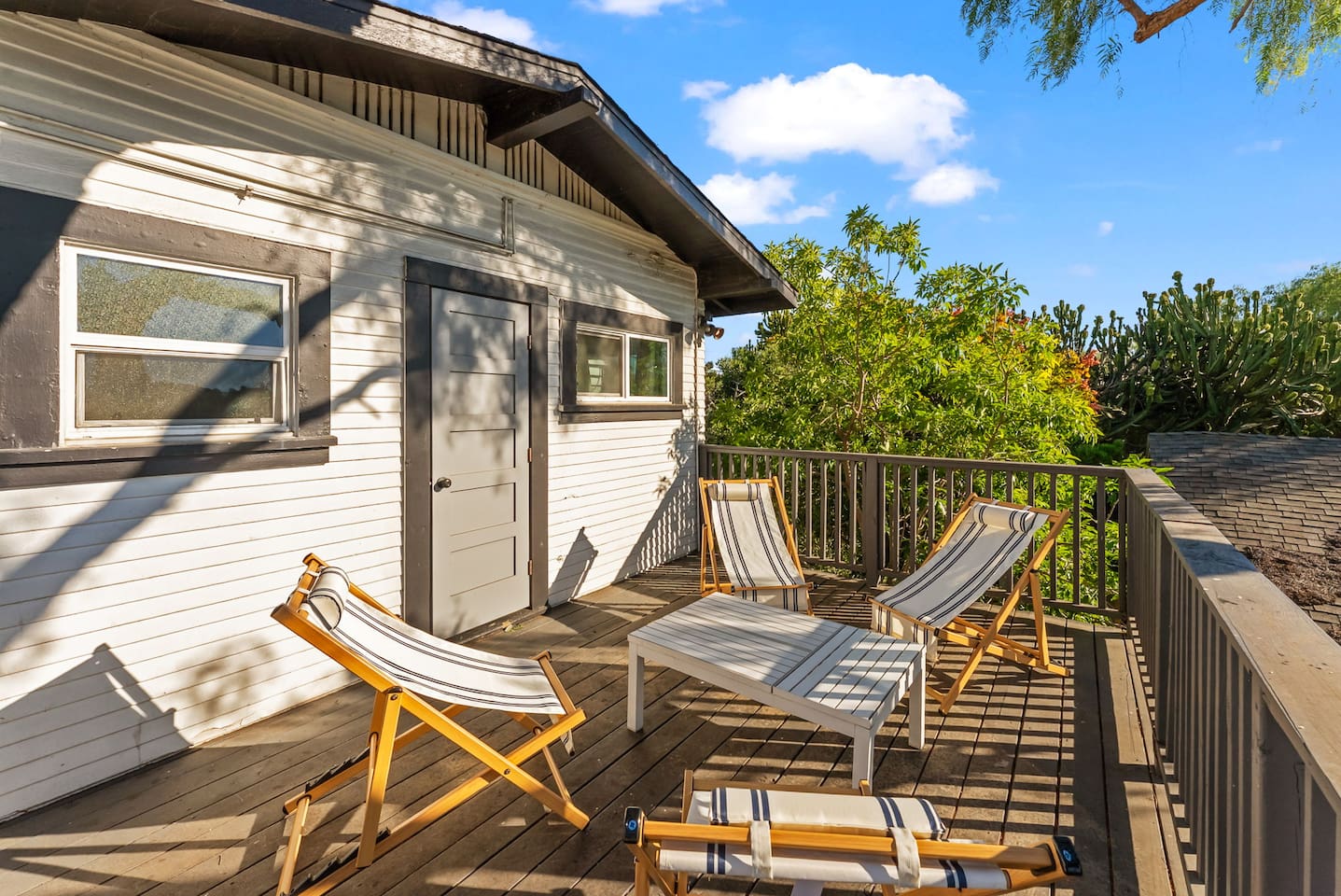 Top Deck Retreat by Coastline Vacation Rentals Step into your own private upstairs escape — a charming, character-filled home that’s part of a peaceful duplex, yet completely your own. You’ll have the entire top floor to yourself, with a private front yard for morning coffee and a back balcony featuring a cozy conversation area for evenings under the stars. This home isn’t your typical cookie-cutter stay. It’s vintage, full of personality, and designed for travelers who appreciate spaces with soul — where original touches meet modern comfort. Located in a walkable, tree-lined neighborhood, you’ll love how easy it is to get around. Hop on the freeway in less than a minute and be anywhere in San Diego in no time. You’re just five minutes to Downtown, close to Little Italy’s vibrant restaurants, Petco Park, Waterfront Park, Seaport Village, Balboa Park and the Zoo, and of course, the beaches that make San Diego famous. Inside, the upstairs unit offers a relaxed, open layout perfect for couples, small families, or friends looking to explore the city and come home to comfort. The living area opens onto your private back deck, where you can unwind with a glass of wine or enjoy a sunset chat in the lounge seating. Sleeping Arrangements - Bedroom: Twin-over-twin bunk bed - Living Room: Queen sleeper sofa, queen air mattress, Pack ’n Play travel crib If you love homes with character, privacy, and an unbeatable location, this one’s for you. The upstairs retreat offers all the charm of a classic San Diego home — with your own outdoor spaces and quick access to everything the city has to offer.