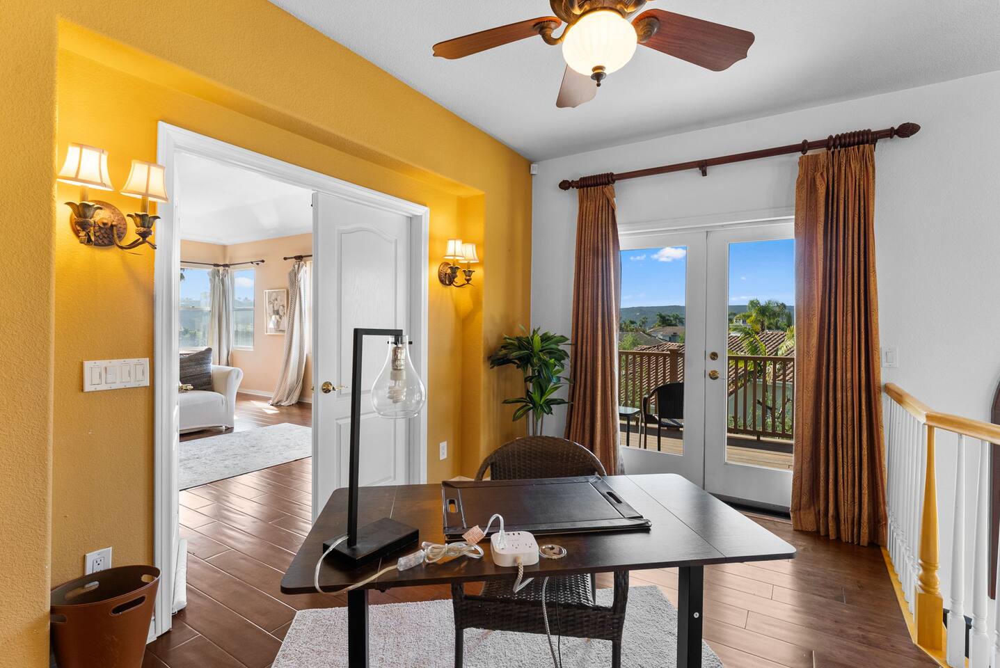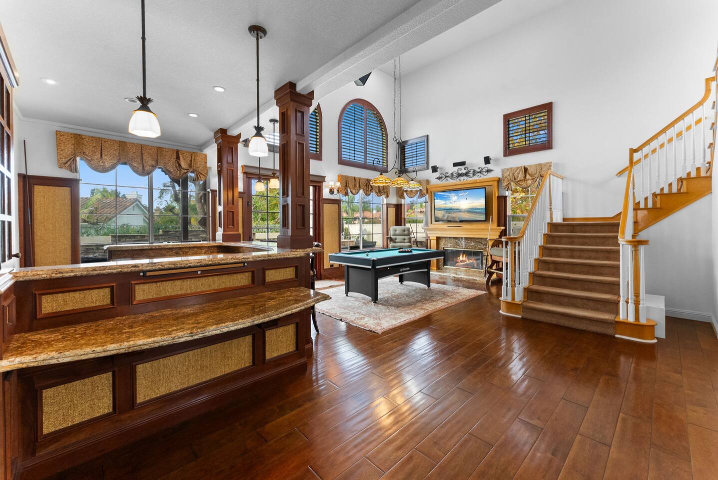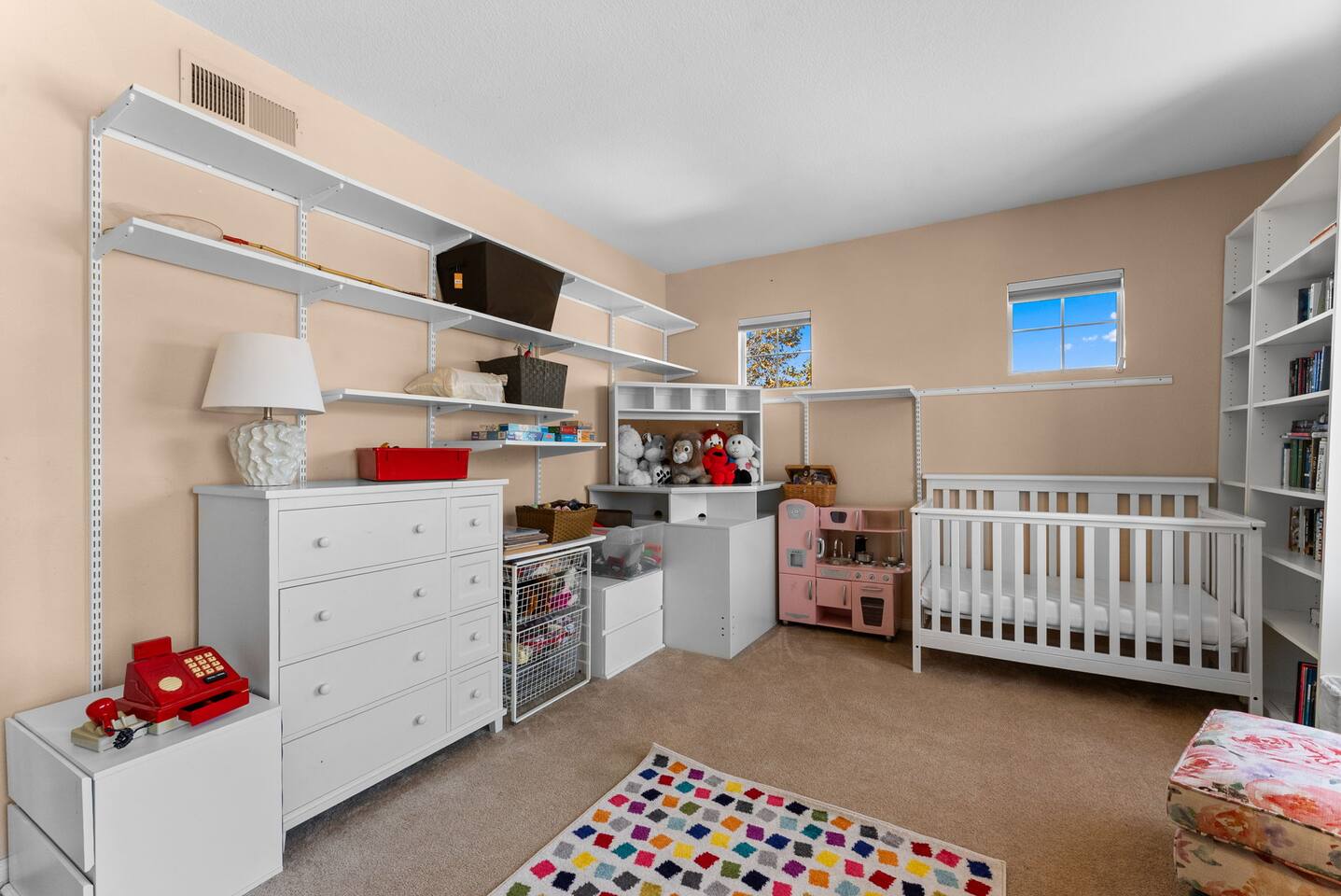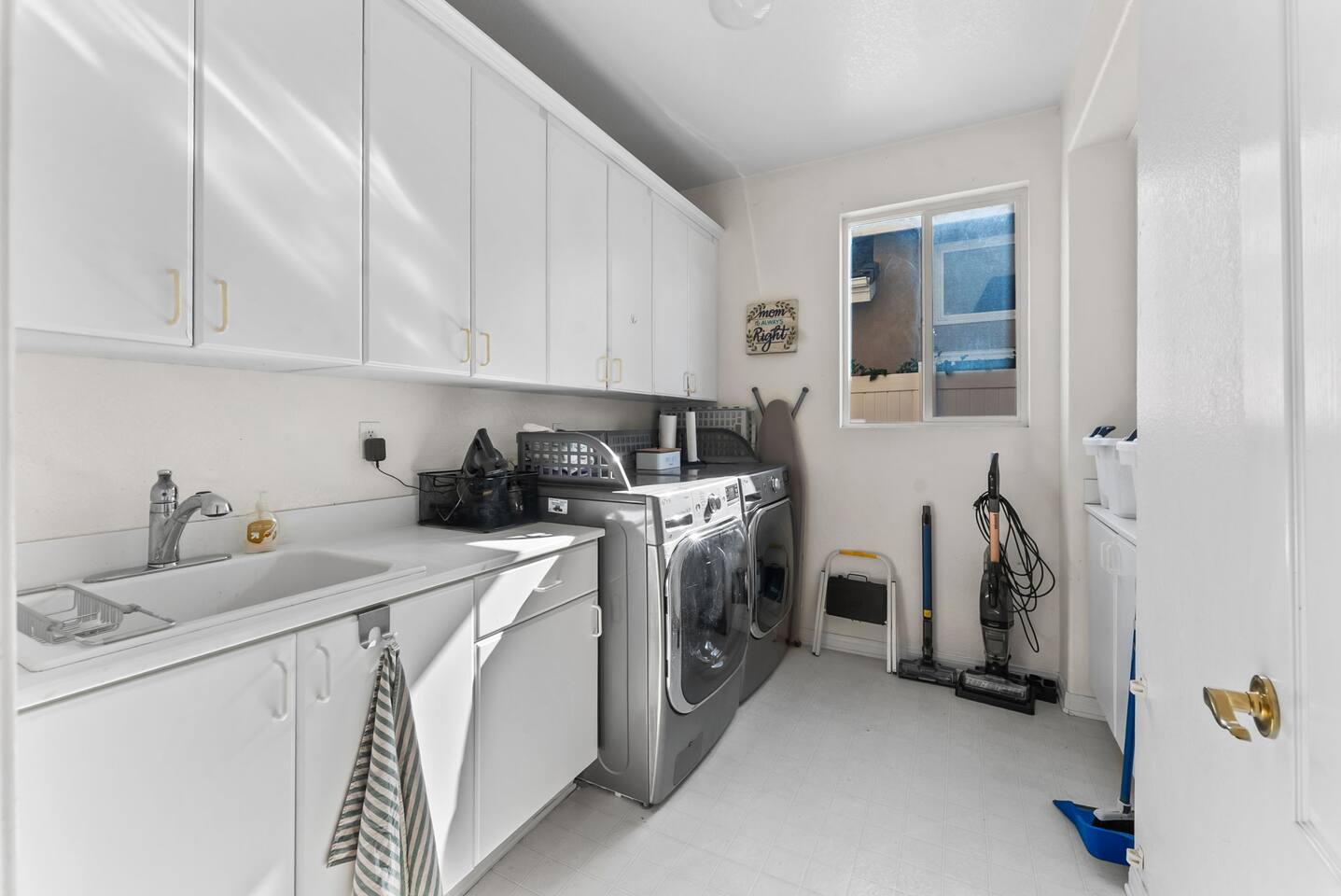 Welcome to your Carmel Valley retreat, a spacious villa designed for families and friends who want to enjoy the best of San Diego in comfort and style. Perfectly located near Del Mar and just a minute from the freeway, this home makes it easy to explore the beaches, downtown, the Zoo, and everything in between—while still offering the peace and quiet of a beautiful neighborhood on a corner lot. Step inside and you’ll immediately feel at home. The downstairs game parlor sets the tone for fun with a convertible pool-and-ping-pong table and a flat-screen TV for game nights. From there, step outside to your private backyard oasis—complete with a sparkling pool, hot tub, outdoor dining area, built-in BBQ, and a separate dog-run and play zone for your furry companions. At night, the pool lights up for a magical swim under the stars. The fenced pool area and alarm system add peace of mind for families with little ones. Back inside, mix a drink at the built-in bar, or whip up a meal in the chef’s kitchen, stocked with everything you need for cooking and entertaining. The living area invites relaxation with its oversized sofa, smart TV, and even a VHS player with nostalgic kids’ movies for a little retro fun. You’ll also find a laundry area, half bath, and a bedroom with an ensuite bathroom downstairs—perfect for guests who prefer to avoid stairs. Sleeping Arrangements Upstairs Bedroom 1 - Primary Suite: King bed, ensuite bath, large closet (great for infant sleep setup with Pack ’n Play) Bedroom 2: King bed with TV and dresser Bedroom 3: Two twin beds (one trundle, can combine into large bed or lower for toddlers) Bedroom 4: Playroom with full-size crib, toys, books, and blackout shades Downstairs Bedroom 5: Queen bed with ensuite bathroom Head upstairs to the library loft, where books, board games, and even a keyboard piano await. It’s the perfect spot to unwind, learn something new, or get cozy with a book. A dedicated workspace nearby makes remote work a breeze—because someone’s got to fund the fun, right? Out front, enjoy your private front yard with seating and a built-in fire pit, ideal for evening conversations under the California sky. Between the driveway parking, ample street parking, and family-friendly neighborhood, you’ll have all the convenience and comfort of home—just minutes from it all. This home is all about space, comfort, and connection. It’s well-made, beautifully designed, and ready for families who want to swim, play, relax, and make lasting memories together.
