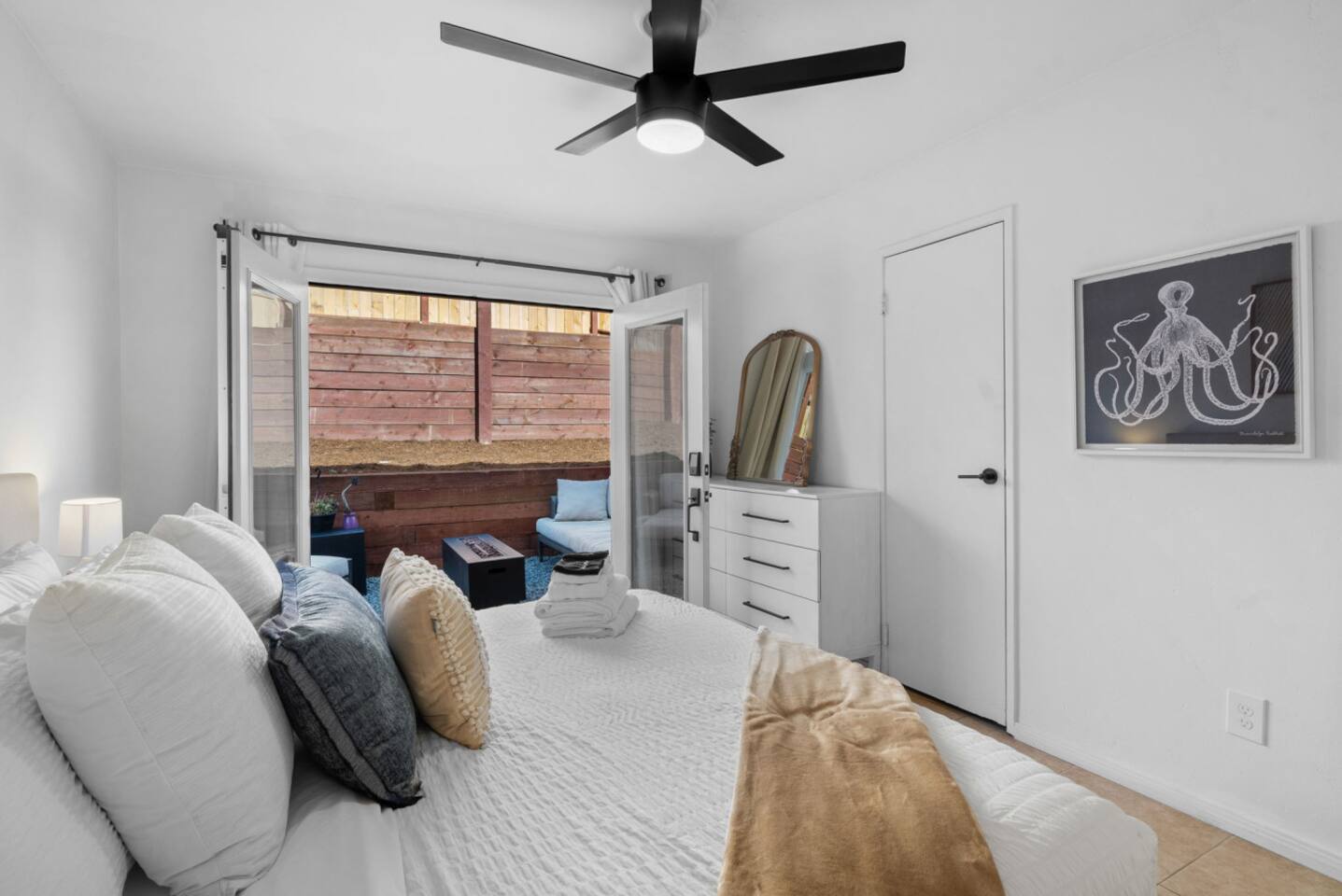 Our comfortable and tranquil homes near the Golden Hill neighborhood of San Diego, CA are located minutes away from Downtown and the beaches. You will have the best of both worlds– being near all this vibrant community has to offer, while also being set in a quiet residential neighborhood. Enjoy high-speed WiFi, thoughtful amenities, Smart TV, and beach essentials. FRONT HOUSE: 2 Bedrooms, 1 Bath Bedroom 1 has a King Bed Bedroom 2 has a Queen Bed Living Room has a pull out sofa - size Queen ** The front house has a fenced patio with two chairs and a grill BACK HOUSE: 2 Bedrooms, 1 Bath Bedroom 1 has a King Bed Bedroom 2 has a Queen Bed Living Room has a pull out sofa - size Queen ** The back house has a front patio and a back area with a fire pit, accessible through french doors from Bedroom 1