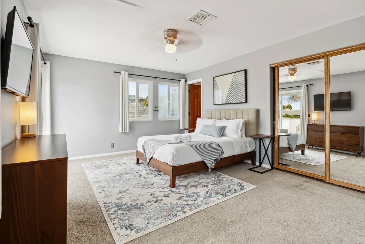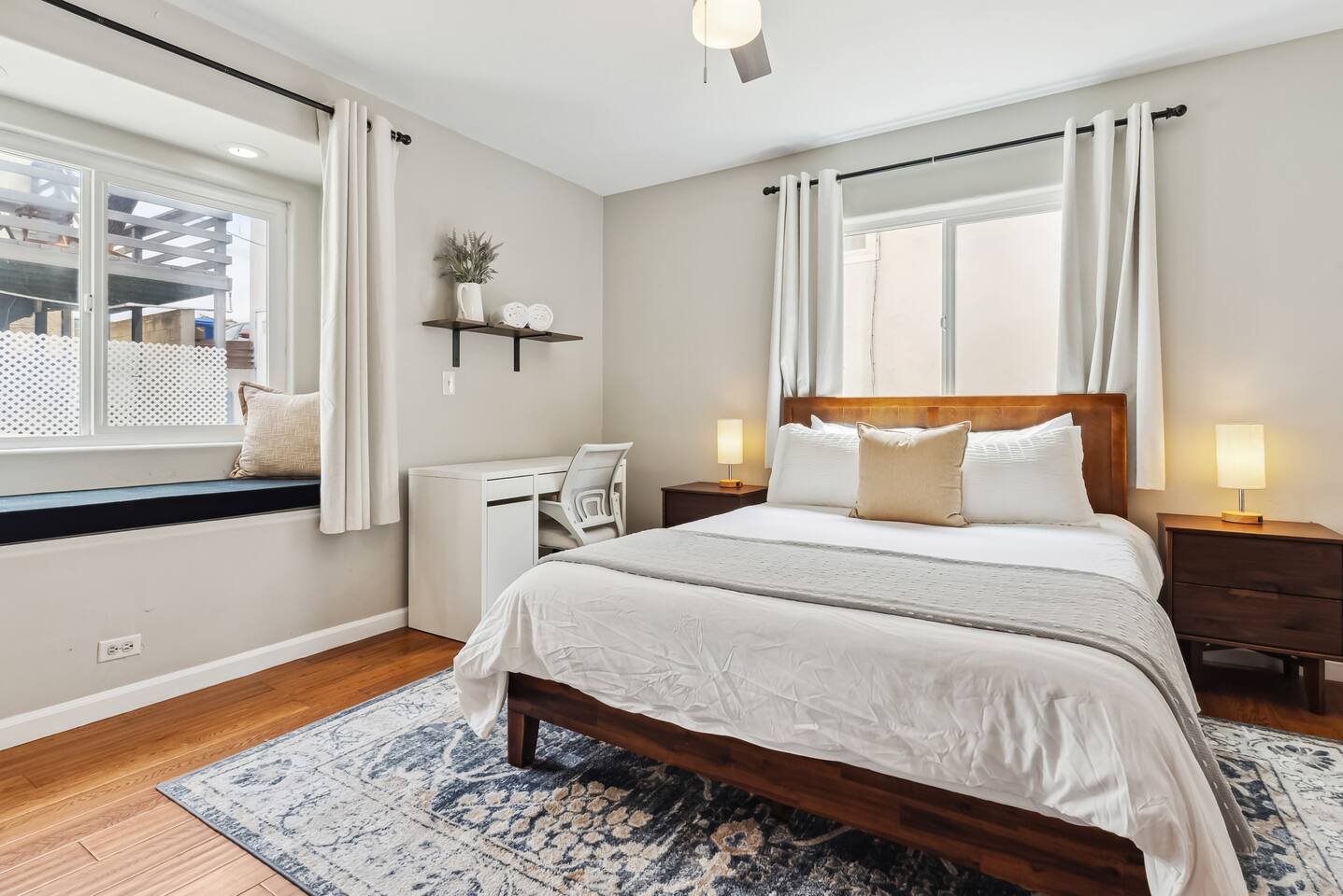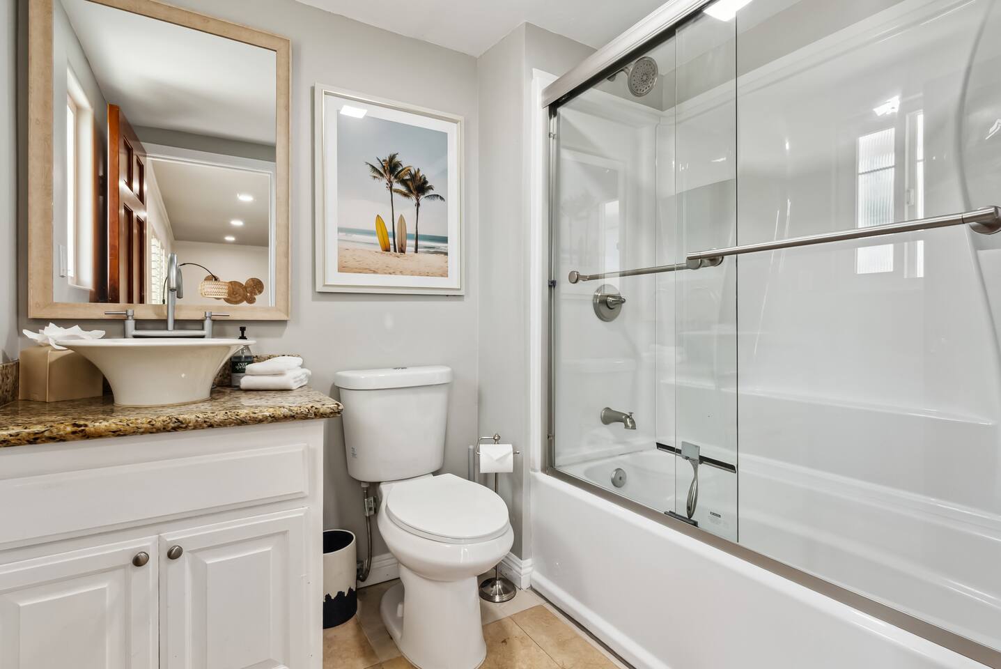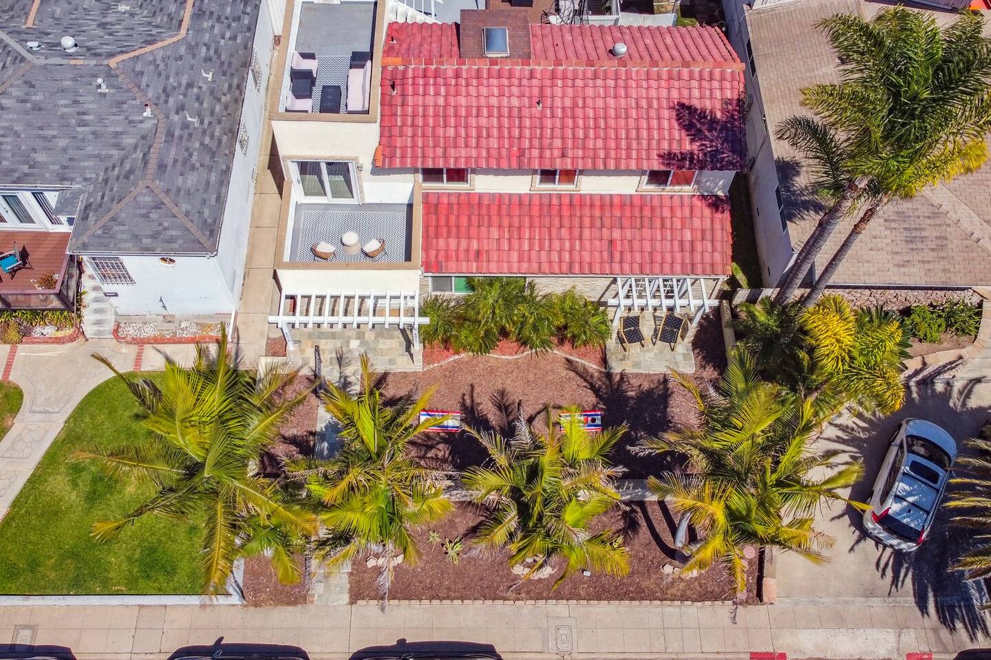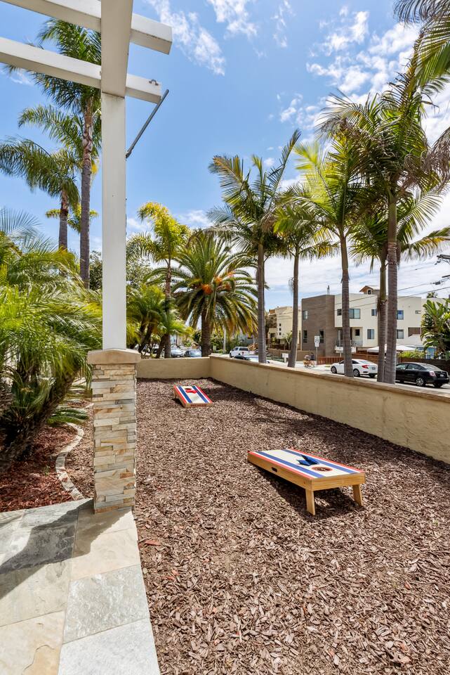 The Point by Coastline Vacation Rentals Imagine waking up to the gentle hum of the bay just a block away, stepping outside with a cup of coffee in hand, and breathing in the salty air while the day begins to glow over Mission Bay. Welcome to your home-away-from-home—a place where every moment feels like vacation, and the memories you make last long after you’ve unpacked. This spacious 5-bedroom, 4-bathroom retreat was designed for gathering. Whether you’re here with family, friends, or a mix of both, there’s room for everyone to spread out, relax, and enjoy San Diego’s coastal charm. Spend the day soaking up the sun on one of the multiple patios, challenge your crew to a game of cornhole in the backyard, or dine al fresco as the sky turns shades of orange and pink. At night, catch a glimpse of the SeaWorld fireworks from the deck—a magical backdrop to end your perfect beach day. Sleeping Arrangements: Bedroom 1: Queen bed – cozy and calm, perfect for recharging after a day of adventure. Bedroom 2: The ultimate bunk room! Two bunk beds (full over queen) with queen pull-out trundles—a kid’s dream and adult-approved. Bedroom 3: Full bed with soft linens and coastal touches. Bedroom 4: Queen bed with plenty of space to spread out. Bedroom 5: Another comfy queen bed for a restful night’s sleep. When hunger strikes, gather in the modern kitchen to whip up a feast—or grab takeout from one of the countless local spots just steps away. And with the water only a block from your door, you’ll find paddleboarding, biking, and beach walks are just part of your daily routine. Your San Diego story starts here. Whether it’s laughter echoing through the house, a friendly competition of cornhole, or toasting under the fireworks, this home isn’t just a place to stay—it’s a place to make memories.