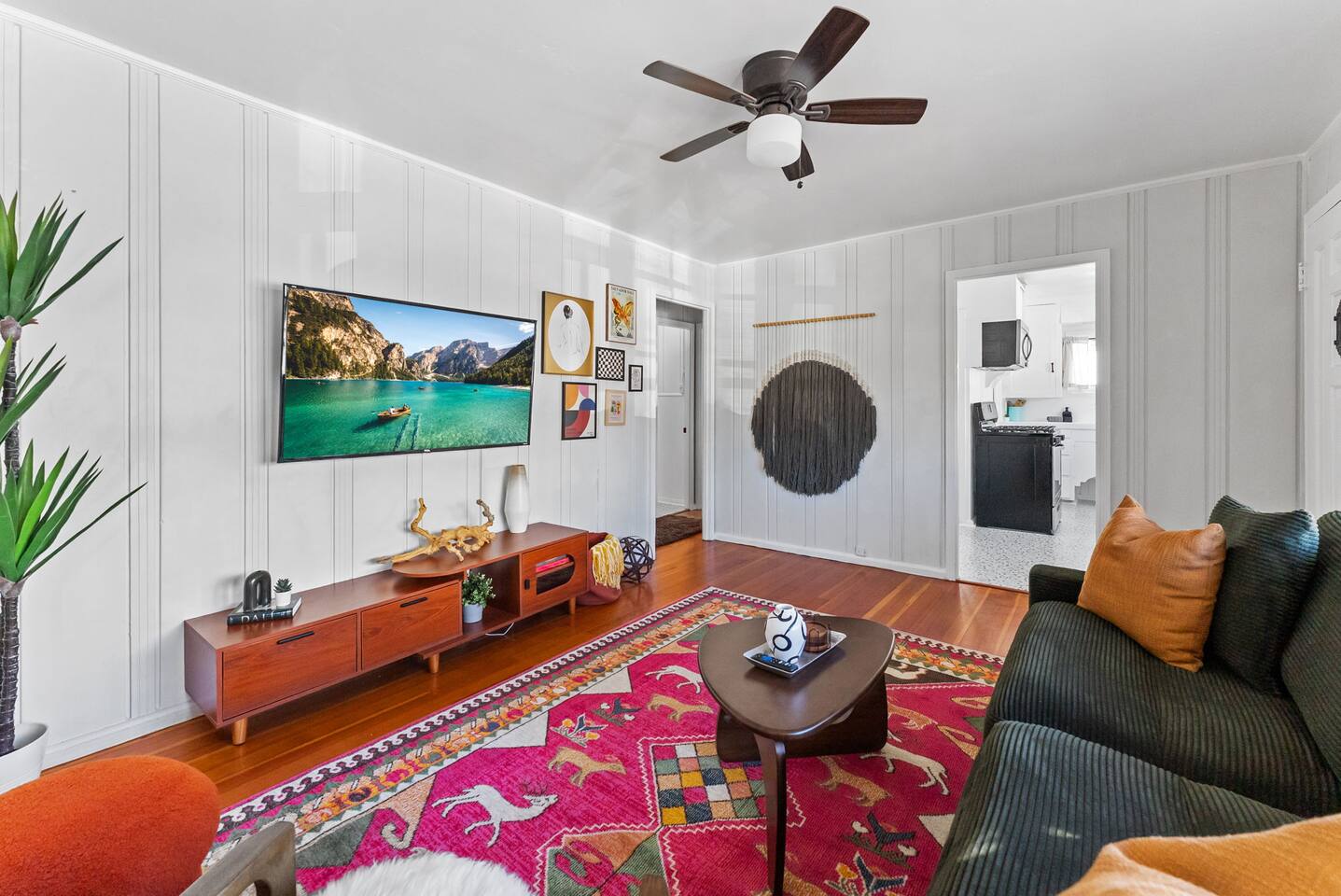 The Ruby Door by Coastline Vacation Rentals Our private 2-bedroom, 1-bath cottage in San Diego’s vibrant Golden Hill neighborhood blends vintage charm with fun, funky decor for a one-of-a-kind stay. Step inside and you’ll find thoughtfully curated spaces that balance retro character with comfort and color. Both bedrooms feature queen beds, and there’s an additional queen sleeper sofa in the living room for extra guests. The fully equipped kitchen and cozy lounge areas make it easy to relax, cook, and unwind after a day exploring the city. Outside, enjoy your own private, fully fenced yard with a grill and fire pit area — perfect for morning coffee, evening conversations, or a laid-back barbecue under the stars. You’ll love the Golden Hill location — one of San Diego’s most walkable, creative neighborhoods. Step out your door and stroll to local coffee shops, boutiques, and restaurants, or hop in the car for quick access to the best of the city: - 5 minutes to Downtown, Balboa Park, or the Zoo - 1 minute to freeway access for beaches and beyond - The location truly can’t be beat! Whether you’re here for a weekend getaway, a longer stay, or to experience a bit of local San Diego flair, this cheerful cottage offers the perfect blend of character, comfort, and convenience.
