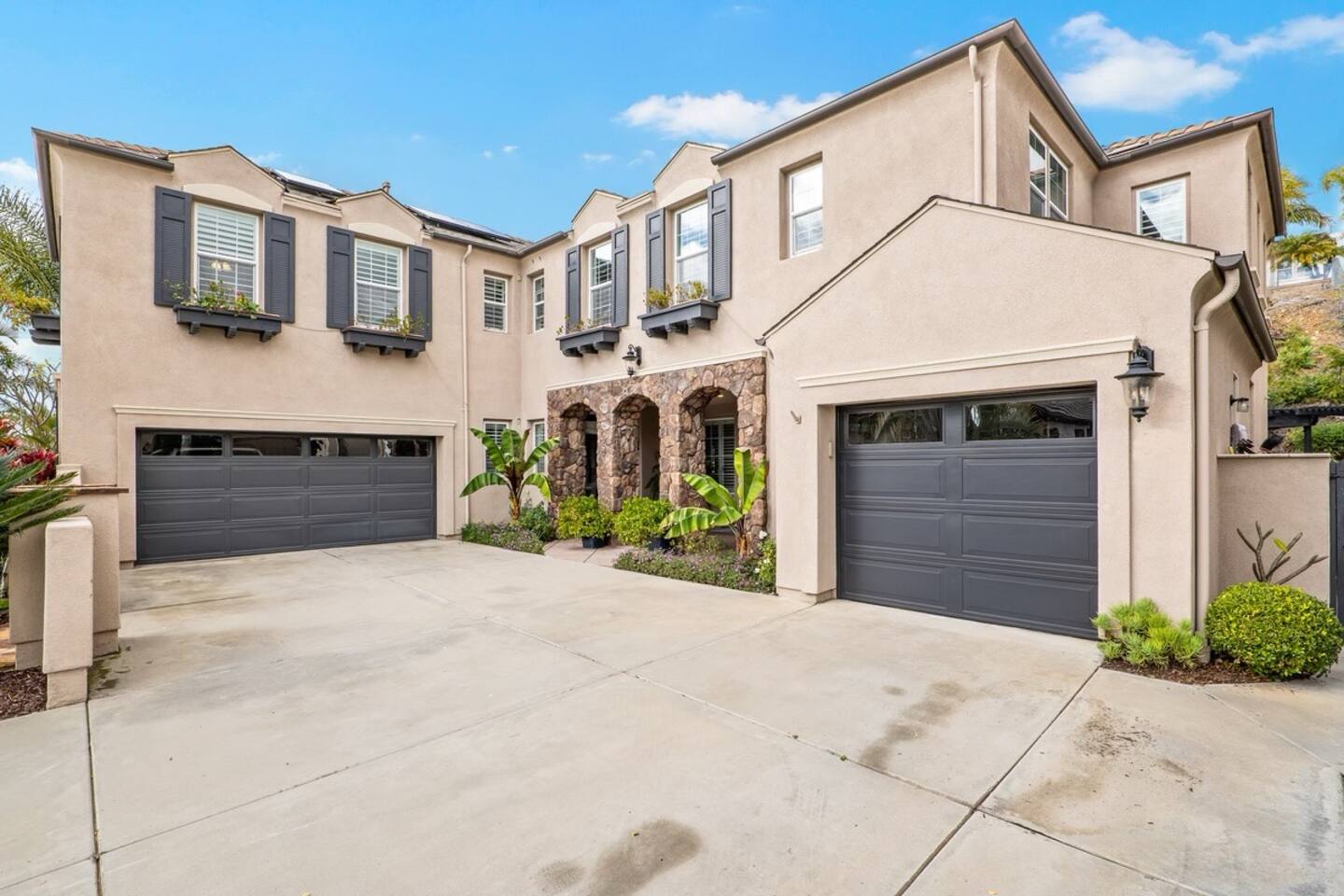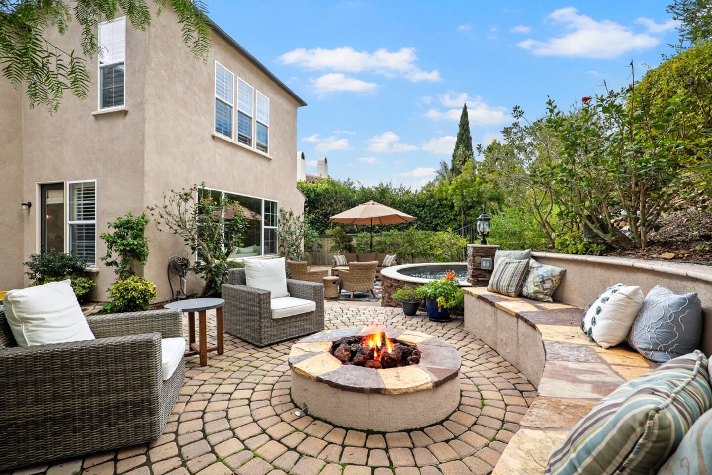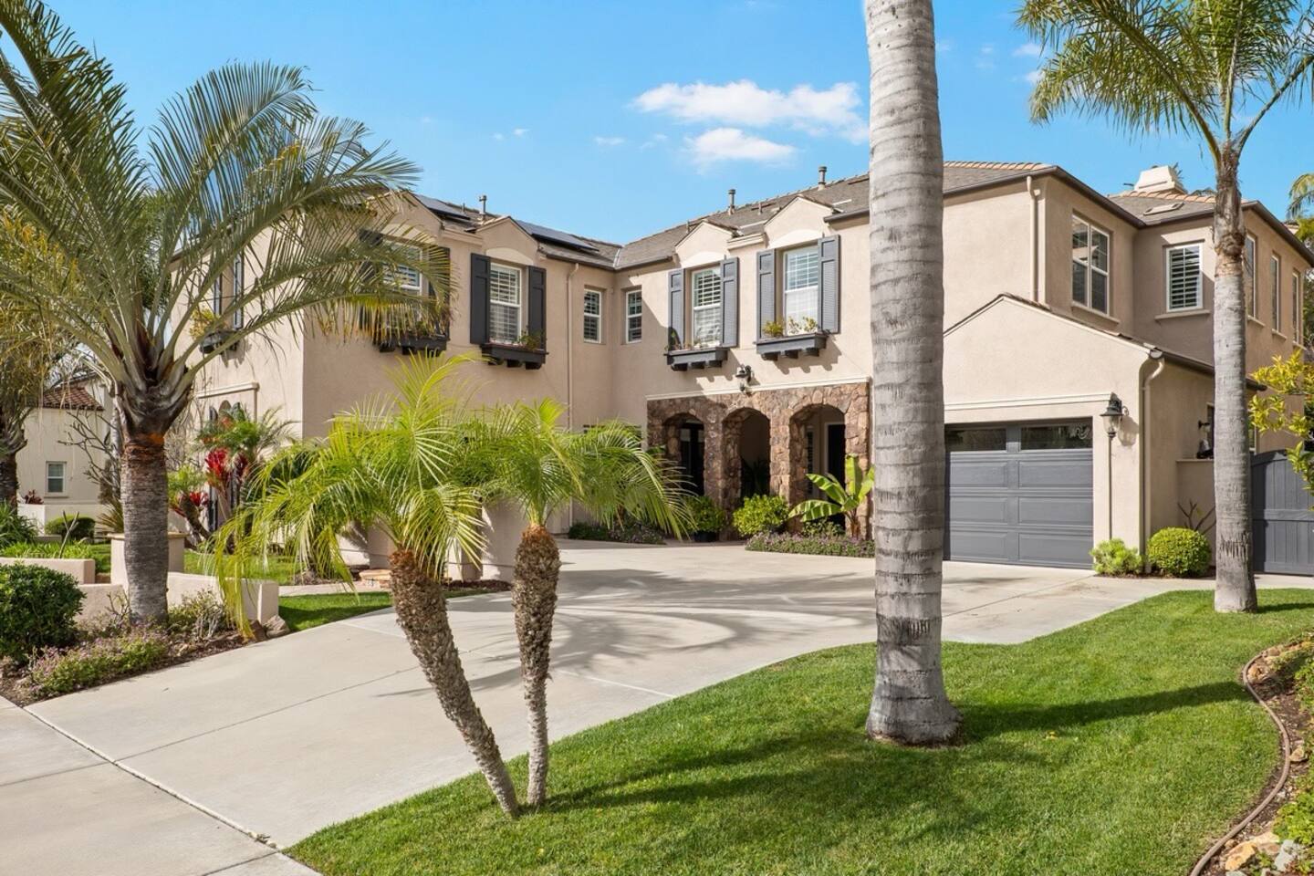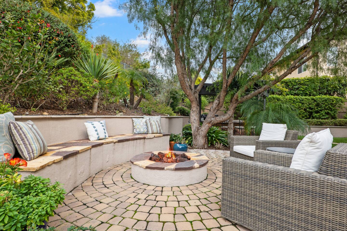 Indulge in luxury at our Carlsbad haven! This 5-bed, 5-bath residence combines modern comfort with coastal allure. Revel in expansive living spaces for your whole group to enjoy, including a backyard sanctuary featuring a waterfall, fire pit, and grill. Ideal for family retreats, you will have the best of both worlds– being just a few miles from all this vibrant beach community has to offer, while also being set in a quiet residential neighborhood. Immerse yourself in luxury for your perfect vacation, complete with spacious rooms, top-of-the-line appliances, and fast wifi. Upon entry to the Great Room, you are greeted with tall ceilings and a bright an airy feel from the many windows. You have the entire property to explore and make yourself at home - complete with 5 bedrooms, 5 baths. Bedroom 1 (Upstairs) has a King Bed with ensuite bathroom Bedroom 2 (Upstairs) has a King Bed with Jack n' Jill bathroom Bedroom 3 (Upstairs) has a Queen Bed with Jack n' Jill bathroom Bedroom 4 (Upstairs) has a King Bed Bedroom 5 (Downstairs) has a pull out sofa - size Queen The home also features three living areas (two downstairs, one upstairs), two dining areas, laundry, and a home gym. Indulge in ultimate relaxation spacious home, featuring a serene outdoor living space complete with two seating areas, fire pit, outdoor kitchen, and a tranquil water feature perfect for unwinding and reconnecting with nature. Spend your days exploring the sandy nearby beaches of the Pacific Ocean - just a 15 minute drive away - and your evenings at home from your own private oasis. Enjoy a vast array of community amenities including the private Oaks Club, an extensive pedestrian pathway and trail system, neighborhood parks, hundreds of acres of recreational and preserved open space and the adjacent 1,000-acre La Costa Preserve. The Oaks Club features a fully-equipped exercise facility, a competition size pool with wading pool and spacious outdoor barbecue and picnic areas for private parties and celebrations. Get the best possible price if you book for 30 days or more!