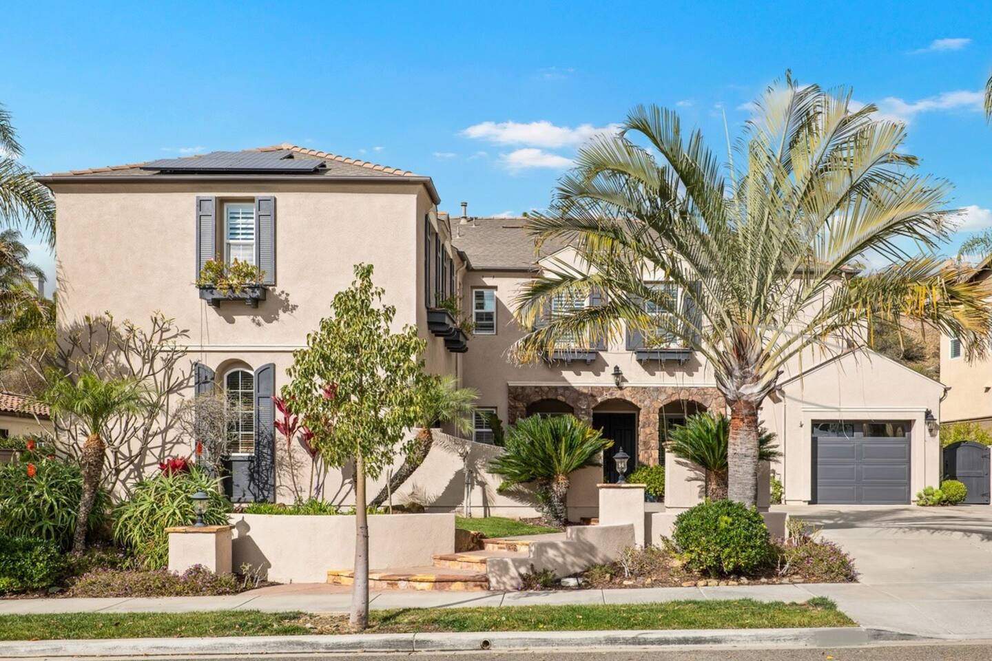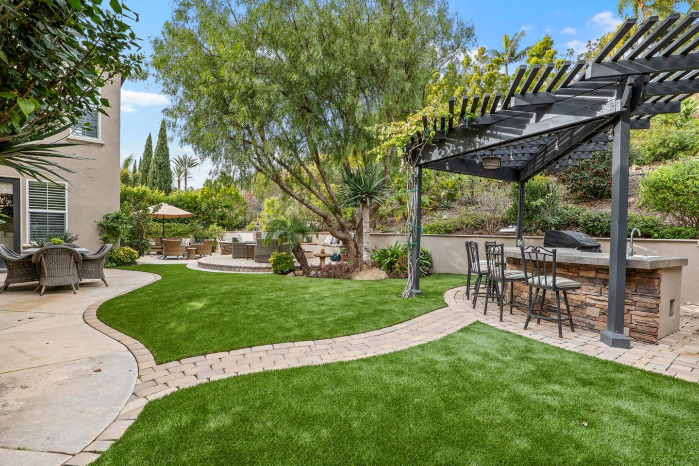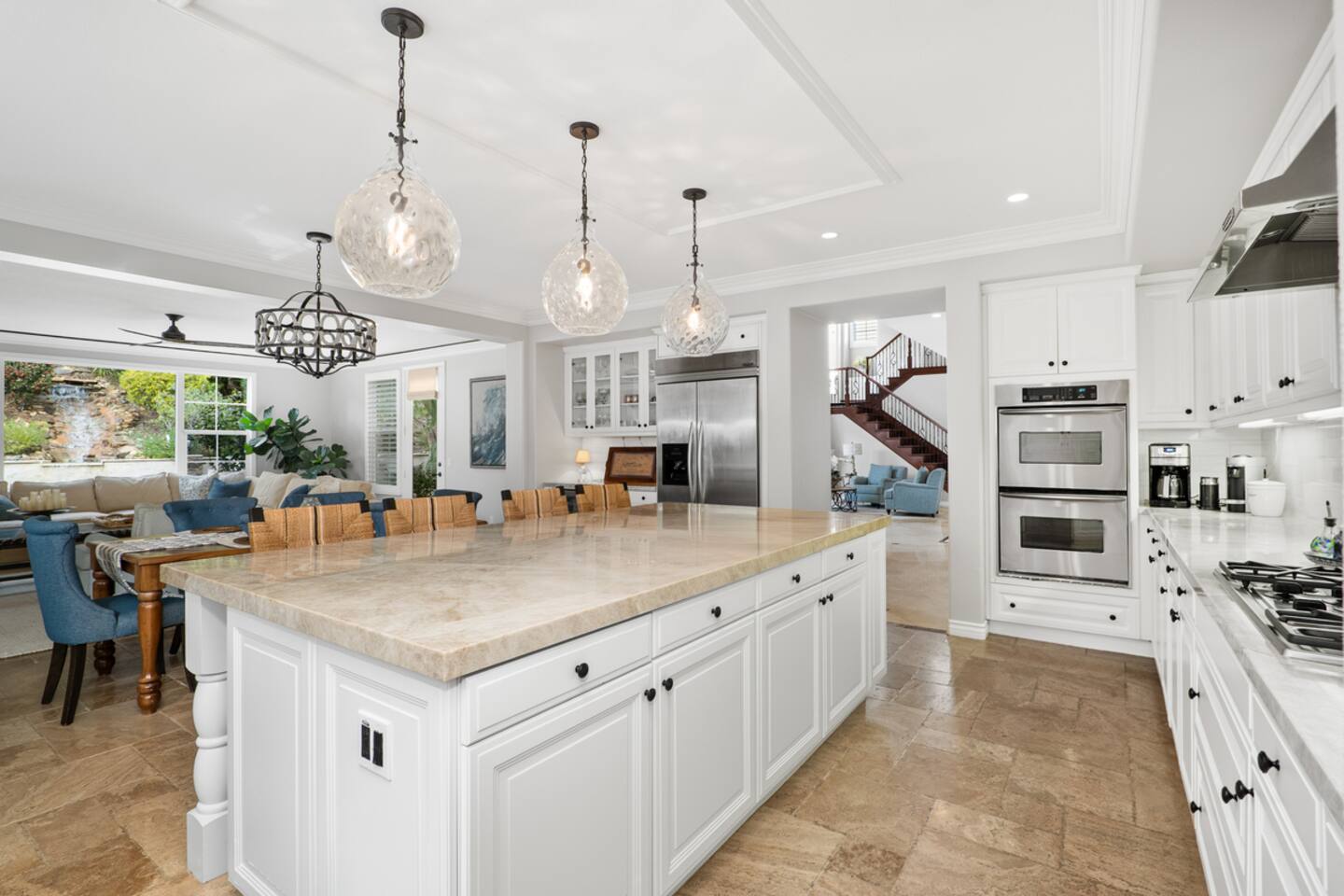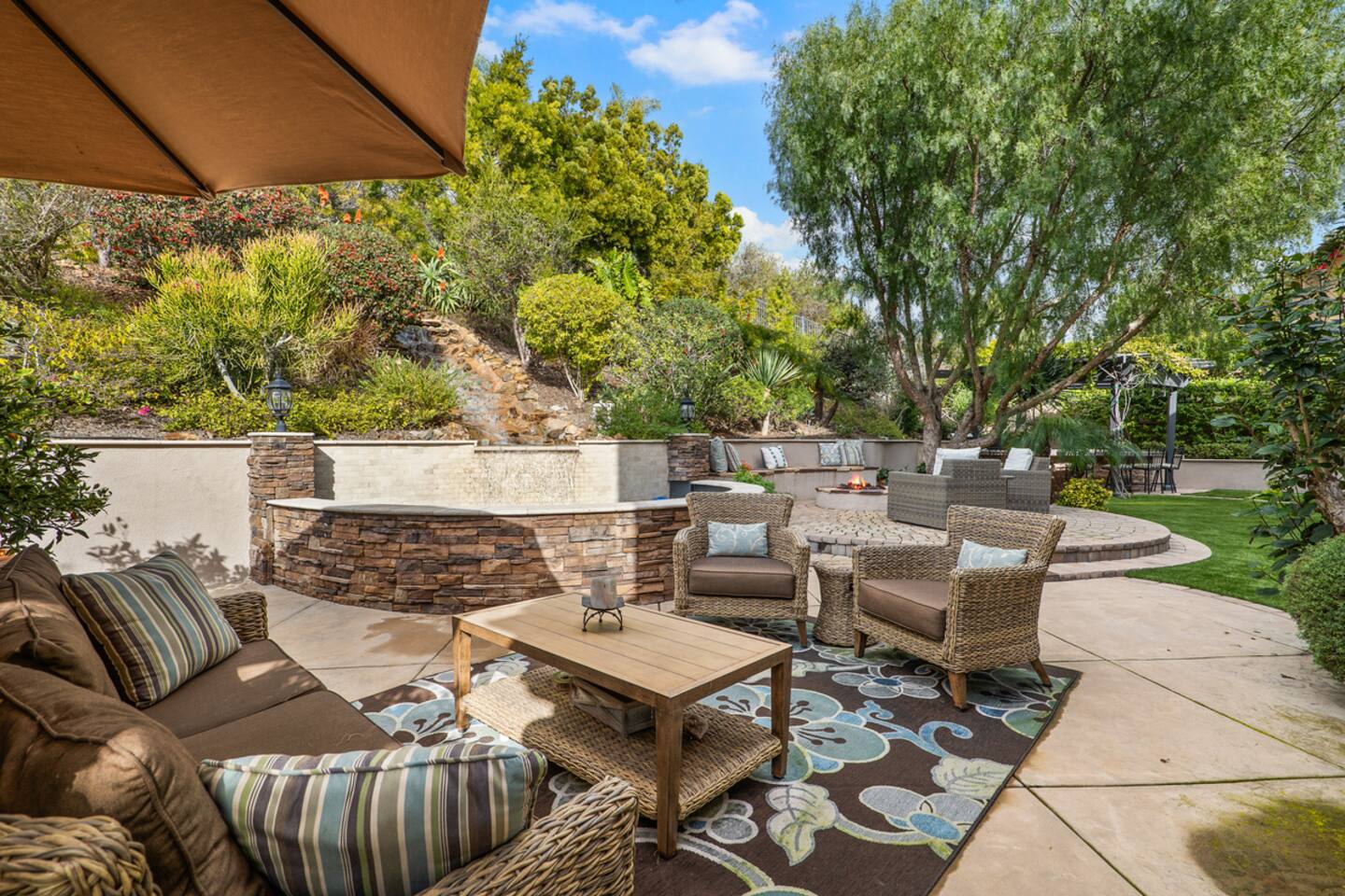 Indulge in luxury at our Carlsbad haven! This 5-bed, 5-bath residence combines modern comfort with coastal allure. Revel in expansive living spaces for your whole group to enjoy, including a backyard sanctuary featuring a waterfall, fire pit, and grill. Ideal for family retreats, you will have the best of both worlds– being just a few miles from all this vibrant beach community has to offer, while also being set in a quiet residential neighborhood. Immerse yourself in luxury for your perfect vacation, complete with spacious rooms, top-of-the-line appliances, and fast wifi. Upon entry to the Great Room, you are greeted with tall ceilings and a bright an airy feel from the many windows. You have the entire property to explore and make yourself at home - complete with 5 bedrooms, 5 baths. Bedroom 1 (Upstairs) has a King Bed with ensuite bathroom Bedroom 2 (Upstairs) has a King Bed with Jack n' Jill bathroom Bedroom 3 (Upstairs) has a Queen Bed with Jack n' Jill bathroom Bedroom 4 (Upstairs) has a King Bed Bedroom 5 (Downstairs) has a pull out sofa - size Queen The home also features three living areas (two downstairs, one upstairs), two dining areas, laundry, and a home gym. Indulge in ultimate relaxation spacious home, featuring a serene outdoor living space complete with two seating areas, fire pit, outdoor kitchen, and a tranquil water feature perfect for unwinding and reconnecting with nature. Spend your days exploring the sandy nearby beaches of the Pacific Ocean - just a 15 minute drive away - and your evenings at home from your own private oasis. Enjoy a vast array of community amenities including the private Oaks Club, an extensive pedestrian pathway and trail system, neighborhood parks, hundreds of acres of recreational and preserved open space and the adjacent 1,000-acre La Costa Preserve. The Oaks Club features a fully-equipped exercise facility, a competition size pool with wading pool and spacious outdoor barbecue and picnic areas for private parties and celebrations. Get the best possible price if you book for 30 days or more!