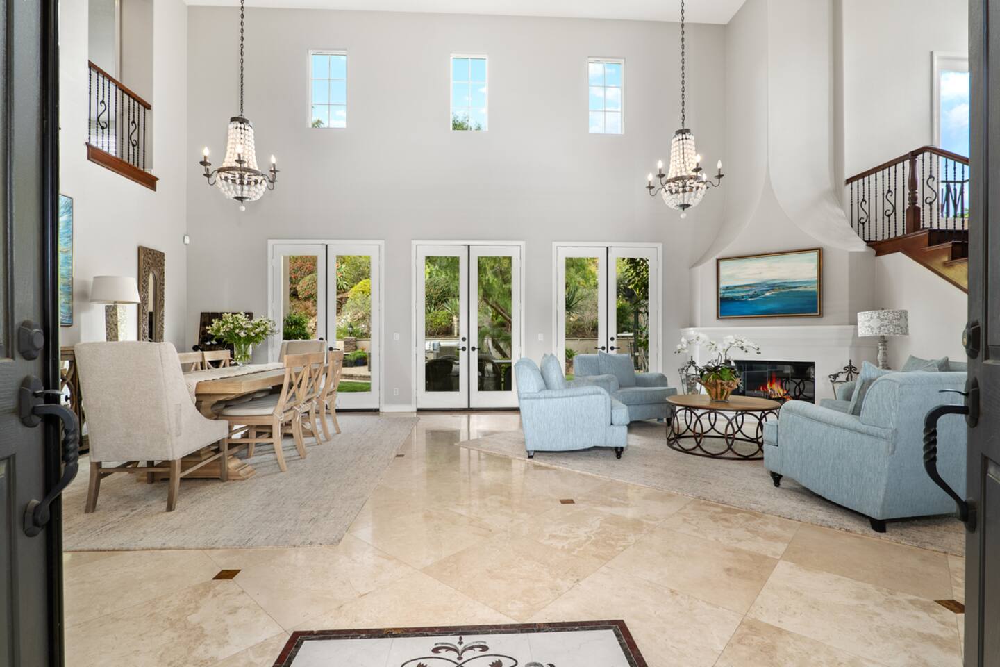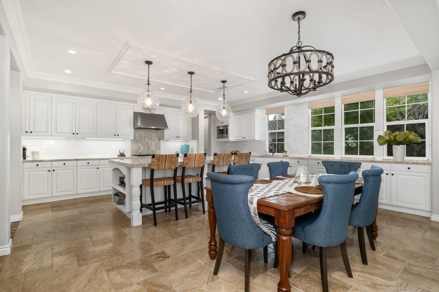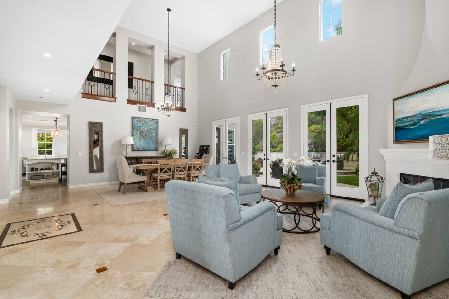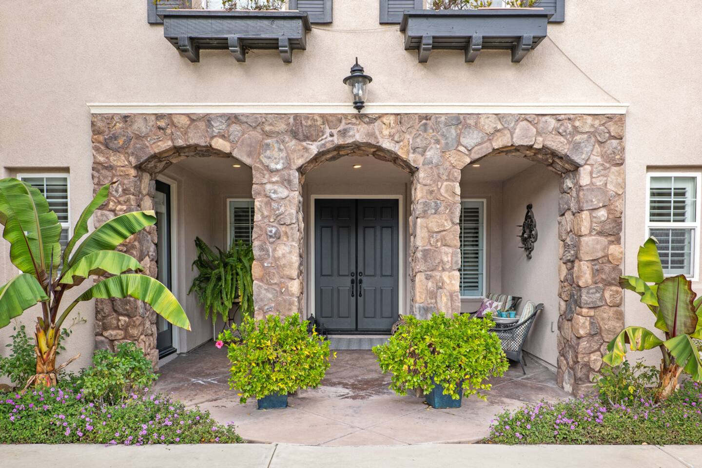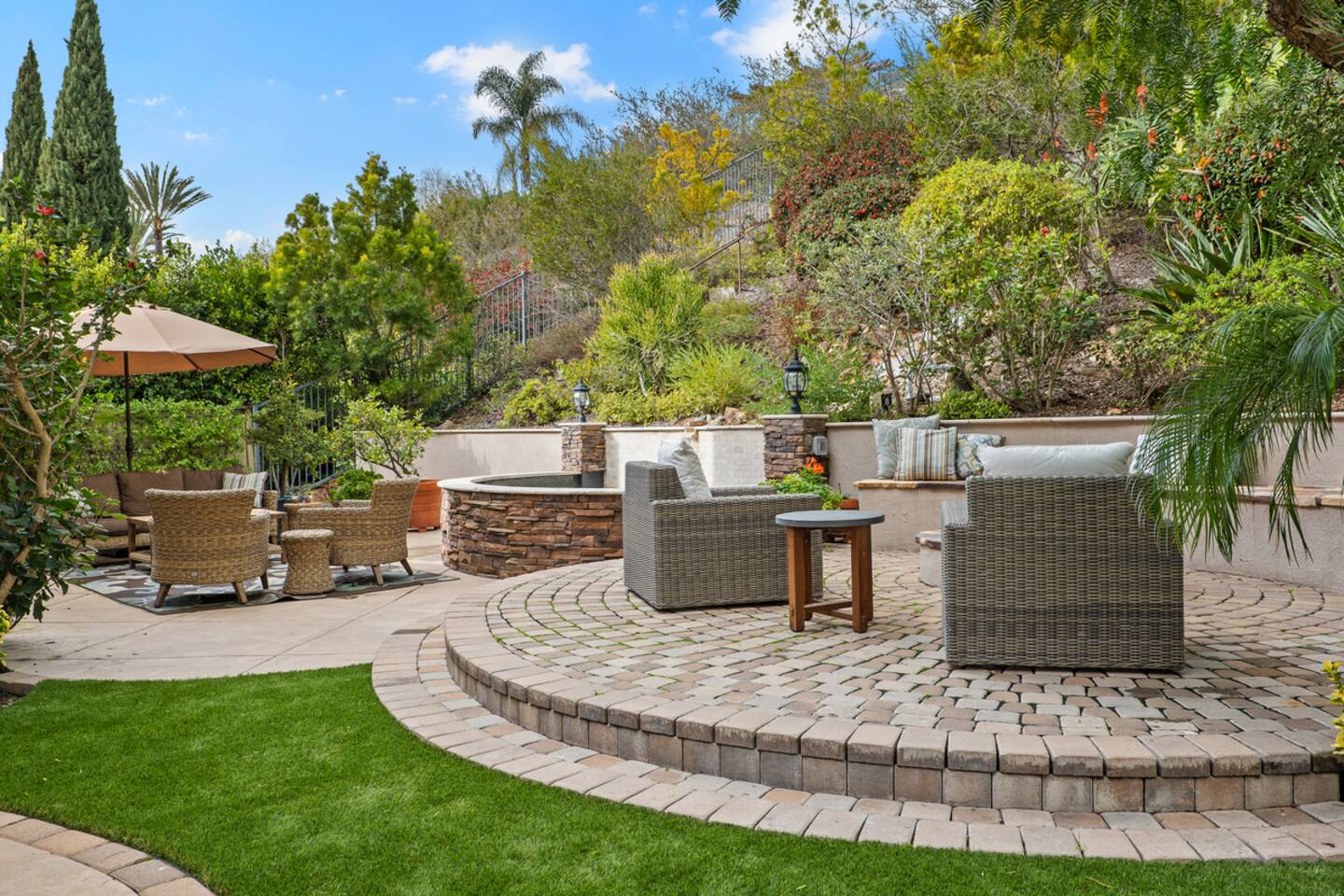 Indulge in luxury at our Carlsbad haven! This 5-bed, 5-bath residence combines modern comfort with coastal allure. Revel in expansive living spaces for your whole group to enjoy, including a backyard sanctuary featuring a waterfall, fire pit, and grill. Ideal for family retreats, you will have the best of both worlds– being just a few miles from all this vibrant beach community has to offer, while also being set in a quiet residential neighborhood. Immerse yourself in luxury for your perfect vacation, complete with spacious rooms, top-of-the-line appliances, and fast wifi. Upon entry to the Great Room, you are greeted with tall ceilings and a bright an airy feel from the many windows. You have the entire property to explore and make yourself at home - complete with 5 bedrooms, 5 baths. Bedroom 1 (Upstairs) has a King Bed with ensuite bathroom Bedroom 2 (Upstairs) has a King Bed with Jack n' Jill bathroom Bedroom 3 (Upstairs) has a Queen Bed with Jack n' Jill bathroom Bedroom 4 (Upstairs) has a King Bed Bedroom 5 (Downstairs) has a pull out sofa - size Queen The home also features three living areas (two downstairs, one upstairs), two dining areas, laundry, and a home gym. Indulge in ultimate relaxation spacious home, featuring a serene outdoor living space complete with two seating areas, fire pit, outdoor kitchen, and a tranquil water feature perfect for unwinding and reconnecting with nature. Spend your days exploring the sandy nearby beaches of the Pacific Ocean - just a 15 minute drive away - and your evenings at home from your own private oasis. Enjoy a vast array of community amenities including the private Oaks Club, an extensive pedestrian pathway and trail system, neighborhood parks, hundreds of acres of recreational and preserved open space and the adjacent 1,000-acre La Costa Preserve. The Oaks Club features a fully-equipped exercise facility, a competition size pool with wading pool and spacious outdoor barbecue and picnic areas for private parties and celebrations. Get the best possible price if you book for 30 days or more!