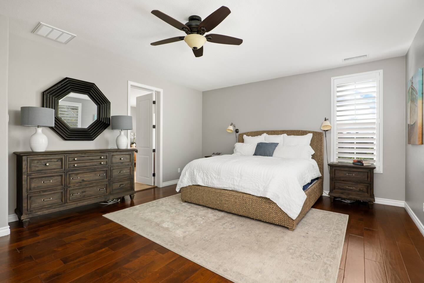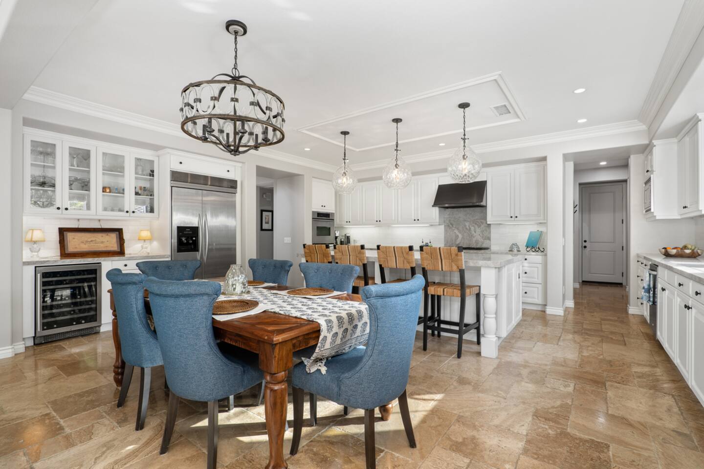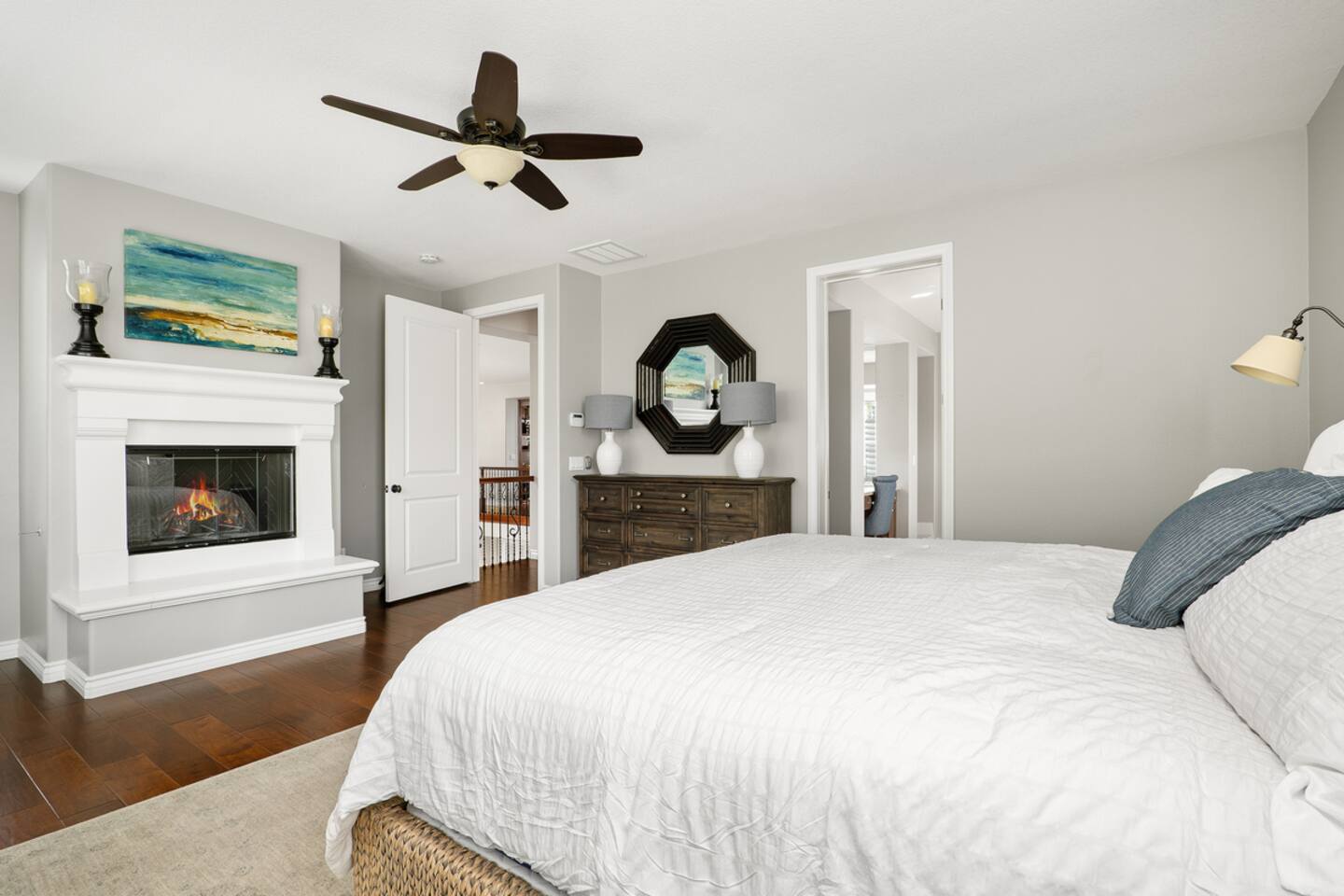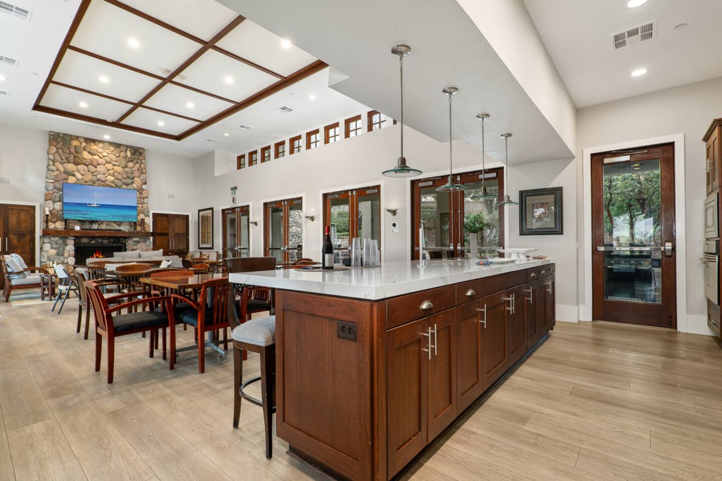 Indulge in luxury at our Carlsbad haven! This 5-bed, 5-bath residence combines modern comfort with coastal allure. Revel in expansive living spaces for your whole group to enjoy, including a backyard sanctuary featuring a waterfall, fire pit, and grill. Ideal for family retreats, you will have the best of both worlds– being just a few miles from all this vibrant beach community has to offer, while also being set in a quiet residential neighborhood. Immerse yourself in luxury for your perfect vacation, complete with spacious rooms, top-of-the-line appliances, and fast wifi. Upon entry to the Great Room, you are greeted with tall ceilings and a bright an airy feel from the many windows. You have the entire property to explore and make yourself at home - complete with 5 bedrooms, 5 baths. Bedroom 1 (Upstairs) has a King Bed with ensuite bathroom Bedroom 2 (Upstairs) has a King Bed with Jack n' Jill bathroom Bedroom 3 (Upstairs) has a Queen Bed with Jack n' Jill bathroom Bedroom 4 (Upstairs) has a King Bed Bedroom 5 (Downstairs) has a pull out sofa - size Queen The home also features three living areas (two downstairs, one upstairs), two dining areas, laundry, and a home gym. Indulge in ultimate relaxation spacious home, featuring a serene outdoor living space complete with two seating areas, fire pit, outdoor kitchen, and a tranquil water feature perfect for unwinding and reconnecting with nature. Spend your days exploring the sandy nearby beaches of the Pacific Ocean - just a 15 minute drive away - and your evenings at home from your own private oasis. Enjoy a vast array of community amenities including the private Oaks Club, an extensive pedestrian pathway and trail system, neighborhood parks, hundreds of acres of recreational and preserved open space and the adjacent 1,000-acre La Costa Preserve. The Oaks Club features a fully-equipped exercise facility, a competition size pool with wading pool and spacious outdoor barbecue and picnic areas for private parties and celebrations. Get the best possible price if you book for 30 days or more!