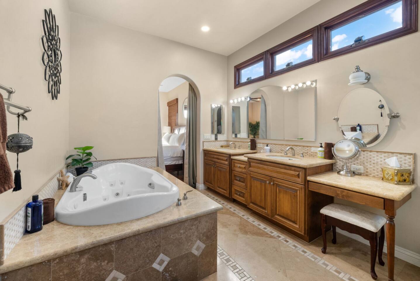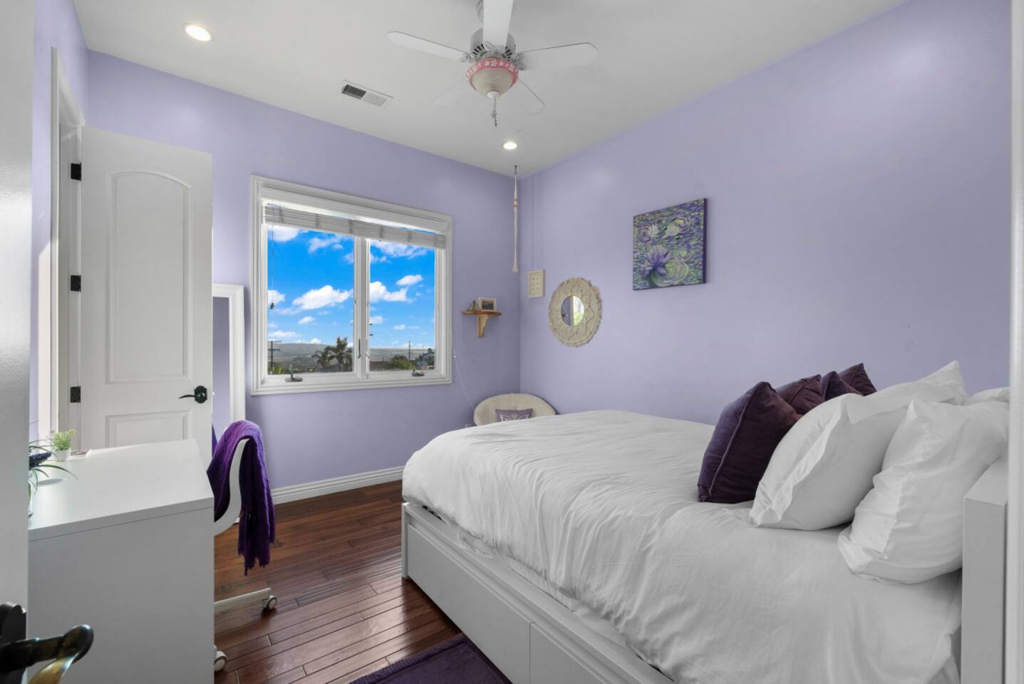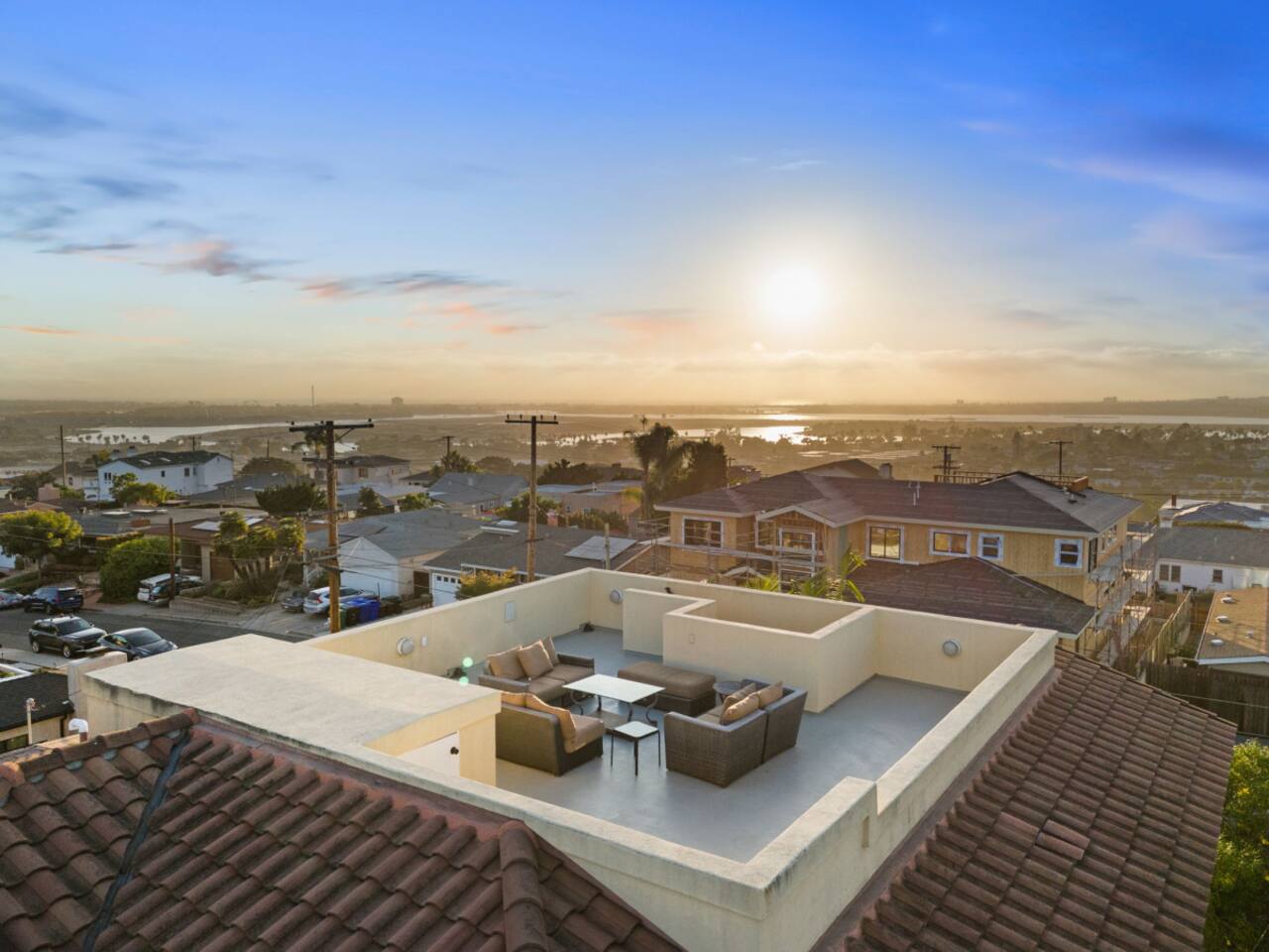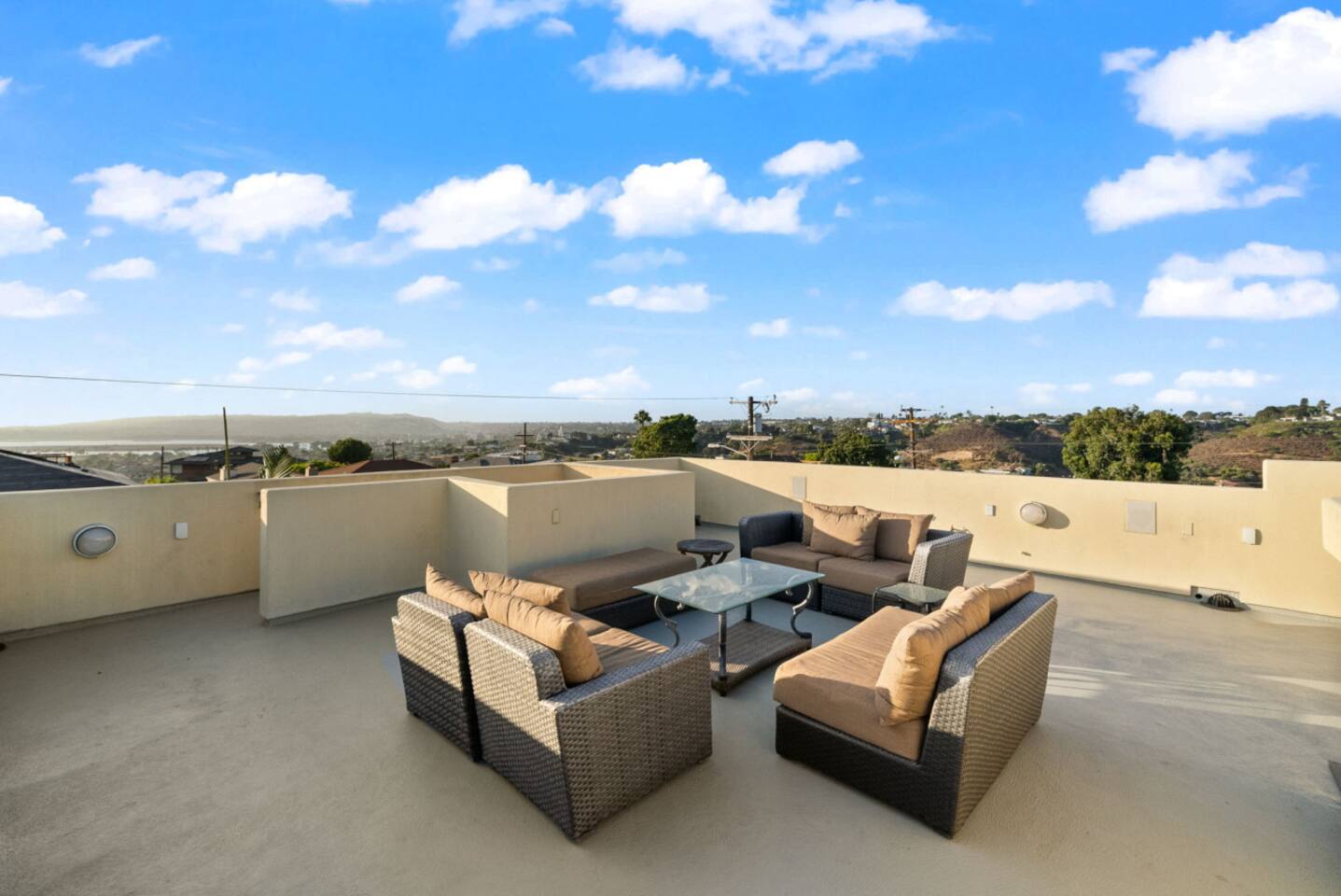 Experience luxury in this 4-bedroom, 3-bath Tuscan-style home, just 10 minutes from the ocean. Enjoy stunning bay and ocean views from the rooftop deck, and unwind in the backyard with a fire pit. The elegant interiors offer comfort and warmth, perfect for families or groups. Whether exploring beaches or relaxing in style, this retreat is your ideal San Diego getaway. The Bedroom & Bathroom breakdown is as follows: - Bedroom 1 (Upstairs) - King bed with ensuite bathroom (Bathroom 1) and private deck - Bedroom 2 (Upstairs) - Queen bed - Bedroom 3 (Upstairs) - Queen bed - Bedroom 4 (Downstairs) - Queen bed Bathrooms: - Bathroom 2 (Upstairs) - typically shared between Bedrooms 2 & 3 - Bathroom 3 (Downstairs) - Full bath with standing shower Family Friendly Amenities: - High chair - Children's dinnerware - Toys - Books - We have a pack n' play travel crib always at the listing for your use. A regular crib, as well as other baby gear, is available to rent from a third party company for an additional fee. Just reach out and we're happy to refer you over!