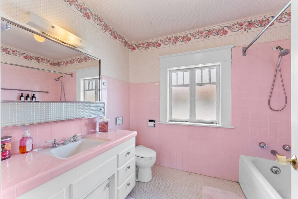 The entire second story of the home is reserved exclusively for Airbnb guests, offering a spacious and private retreat filled with character. Sunlight streams through the windows, illuminating the home’s many vintage details — from the original retro pink tile bathroom to the beautifully preserved wallpaper that adds a nostalgic touch of personality and charm. This space is perfect for guests who appreciate a stay that feels unique and storied, rather than cookie-cutter. Thoughtful updates blend seamlessly with these original features, including quality furniture and furnishings chosen for both comfort and style. A private patio offers a quiet spot to sip coffee or unwind in the evenings, while a full kitchen provides everything needed for home-cooked meals. You will also enjoy the convenience of on-site parking, a rare find in this vibrant neighborhood, making it easy to explore Hillcrest and beyond while having a comfortable, distinctive home to return to at the end of the day.