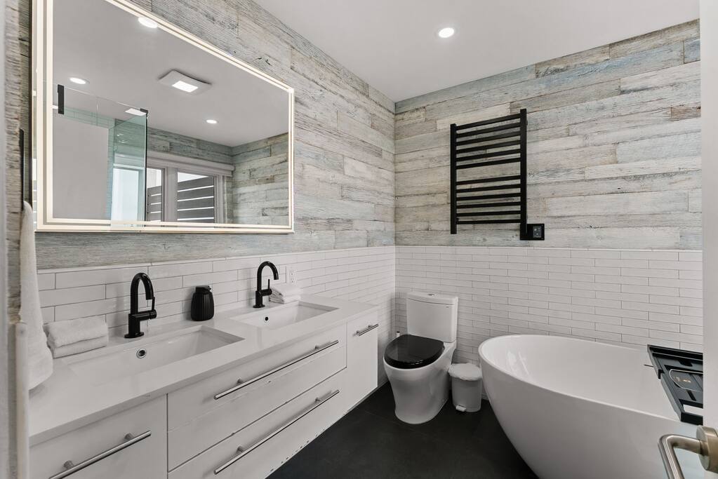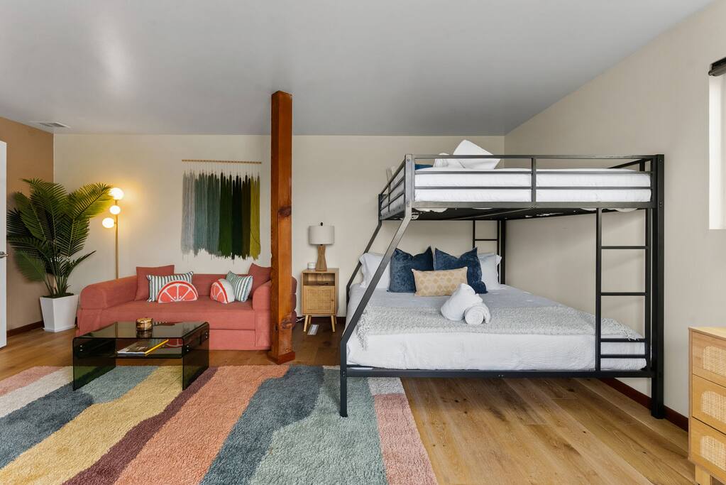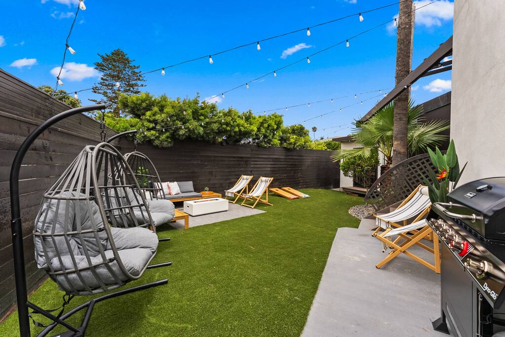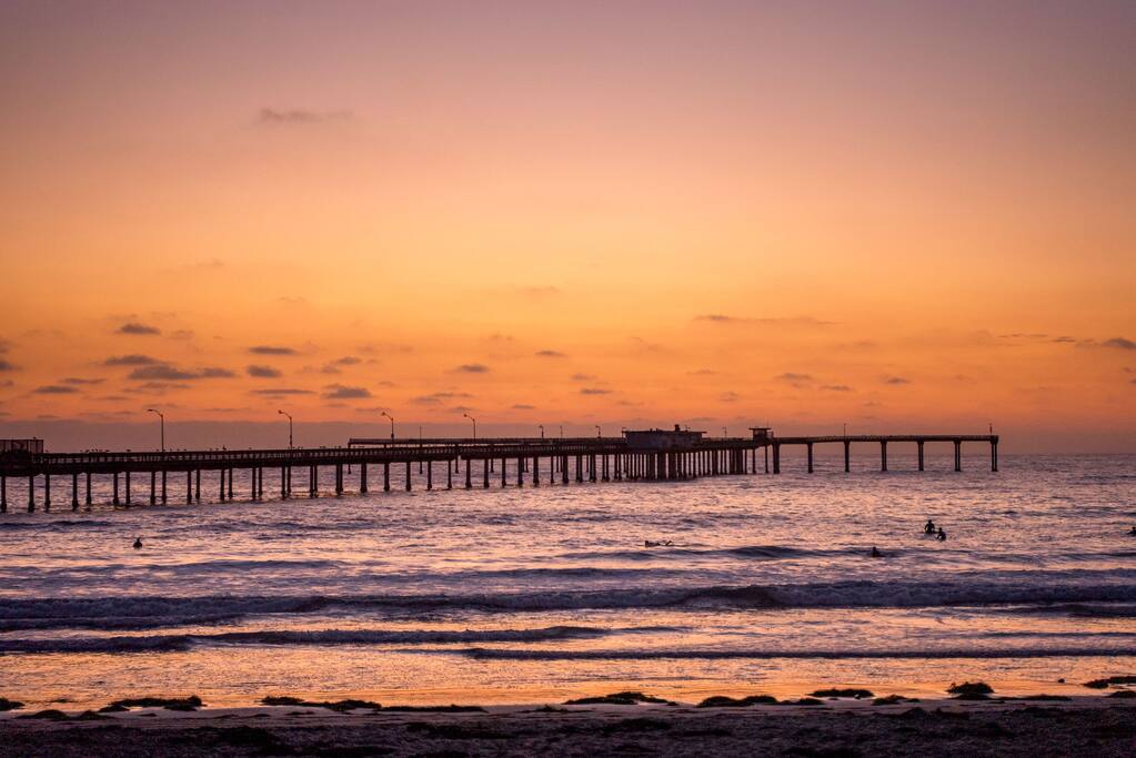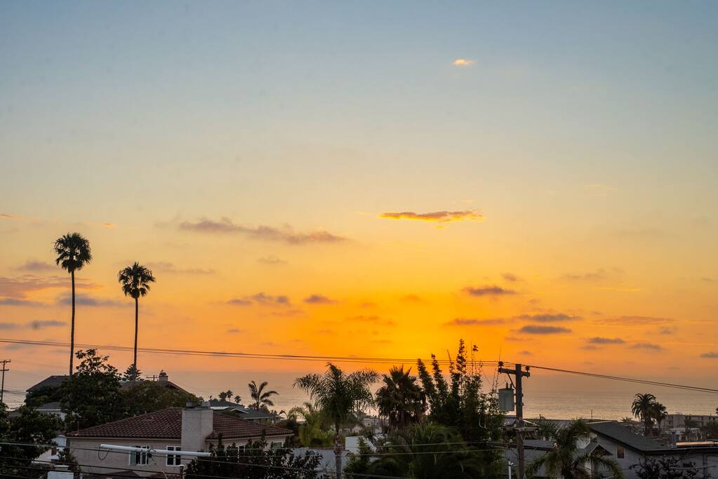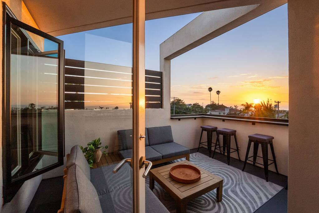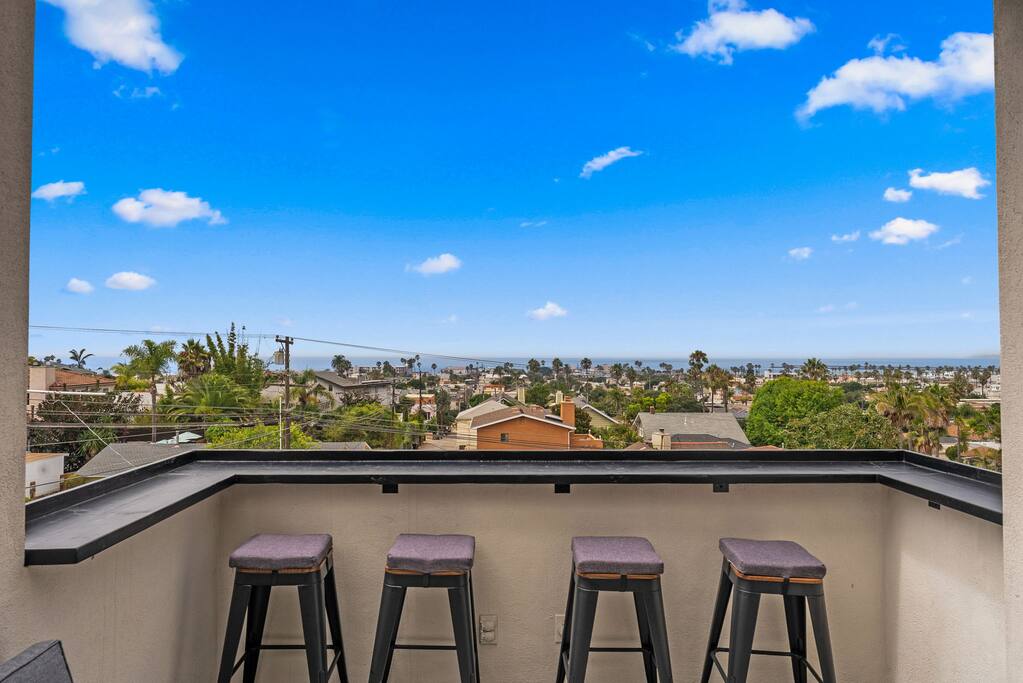 With its three-story contemporary layout, dramatic windows, and multiple decks, the home captures sweeping ocean views and an abundance of natural light throughout the day. Whether you’re sipping your morning coffee while watching the sunrise or winding down with a glass of wine as the sun dips into the Pacific, every moment here feels elevated and serene. The home layout is as follows: First Floor ⎯⎯⎯⎯⎯⎯ Bedroom 2: - King bed Bedroom 3: - Bunk bed with Queen on top and King on bottom - Queen sleeper sofa (futon mattress-style) Bathroom 2: Full bath Patio Second Floor ⎯⎯⎯⎯⎯⎯ - Living room with Queen sleeper sofa - Dining - Kitchen - Half Bathroom - Balcony #2 with ocean views Third Floor ⎯⎯⎯⎯⎯⎯ Bedroom 1: (Loft-style - no door) - King bed - Queen sleeper sofa - Ensuite Primary Bathroom with ocean-view shower and soaking tub - Balcony #1 with ocean views The open-concept main living area is designed for both style and comfort, featuring high ceilings, sleek lines, and a seamless flow between indoor and outdoor spaces. Step onto one of the west-facing decks and take in the salty ocean breeze, or enjoy intimate gatherings in the spacious living and dining areas that are perfect for entertaining. The modern kitchen is fully equipped with everything you’ll need to prepare meals, with contemporary finishes that balance function and design. The top-floor primary loft-style suite is a true sanctuary, offering breathtaking ocean views, a private deck, and a spa-inspired bathroom complete with a soaking tub, walk-in shower, and double vanities. Two additional bedrooms provide comfortable accommodations for family and friends, each thoughtfully designed with plenty of natural light and stylish touches. With two full bathrooms and one half bath, everyone has the space and privacy they need to relax and recharge. Every detail has been considered to create a stay that feels both luxurious and comfortable. Located in a quiet pocket of Ocean Beach, the home offers the best of both worlds: peaceful surroundings with easy access to all the charm of the neighborhood. Stroll down to the beach for a day of sun and surf, explore tide pools at low tide, or wander through the lively main street filled with cafés, boutique shops, and local dining favorites. Whether you’re here for a family vacation, a getaway with friends, or a retreat to reset and recharge, this Ocean Beach escape offers an unforgettable San Diego experience.