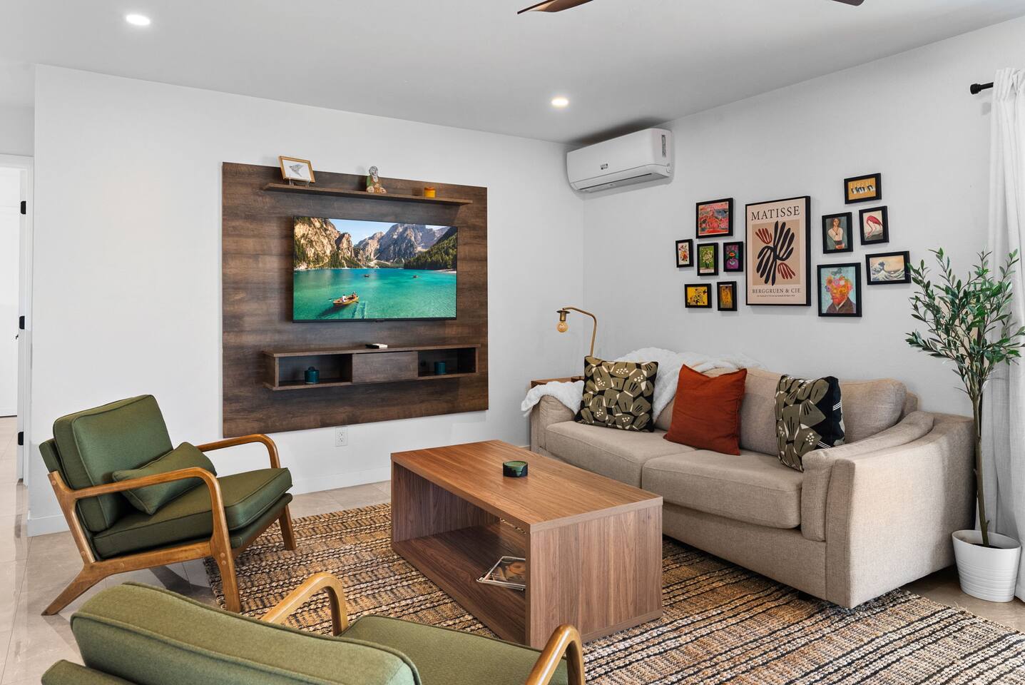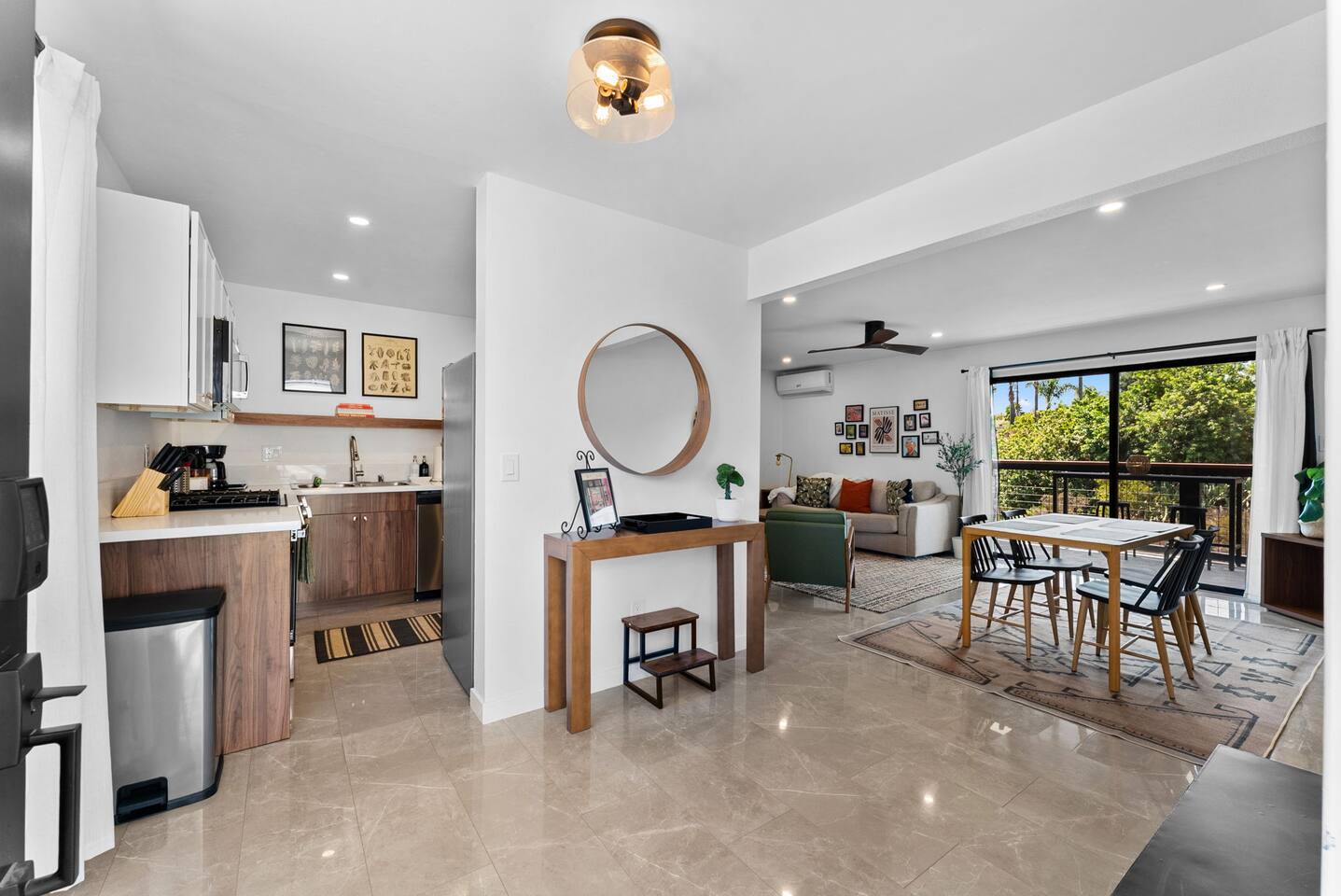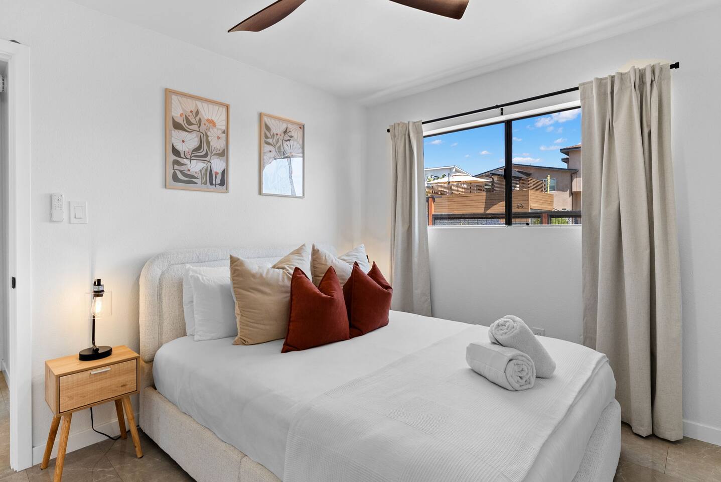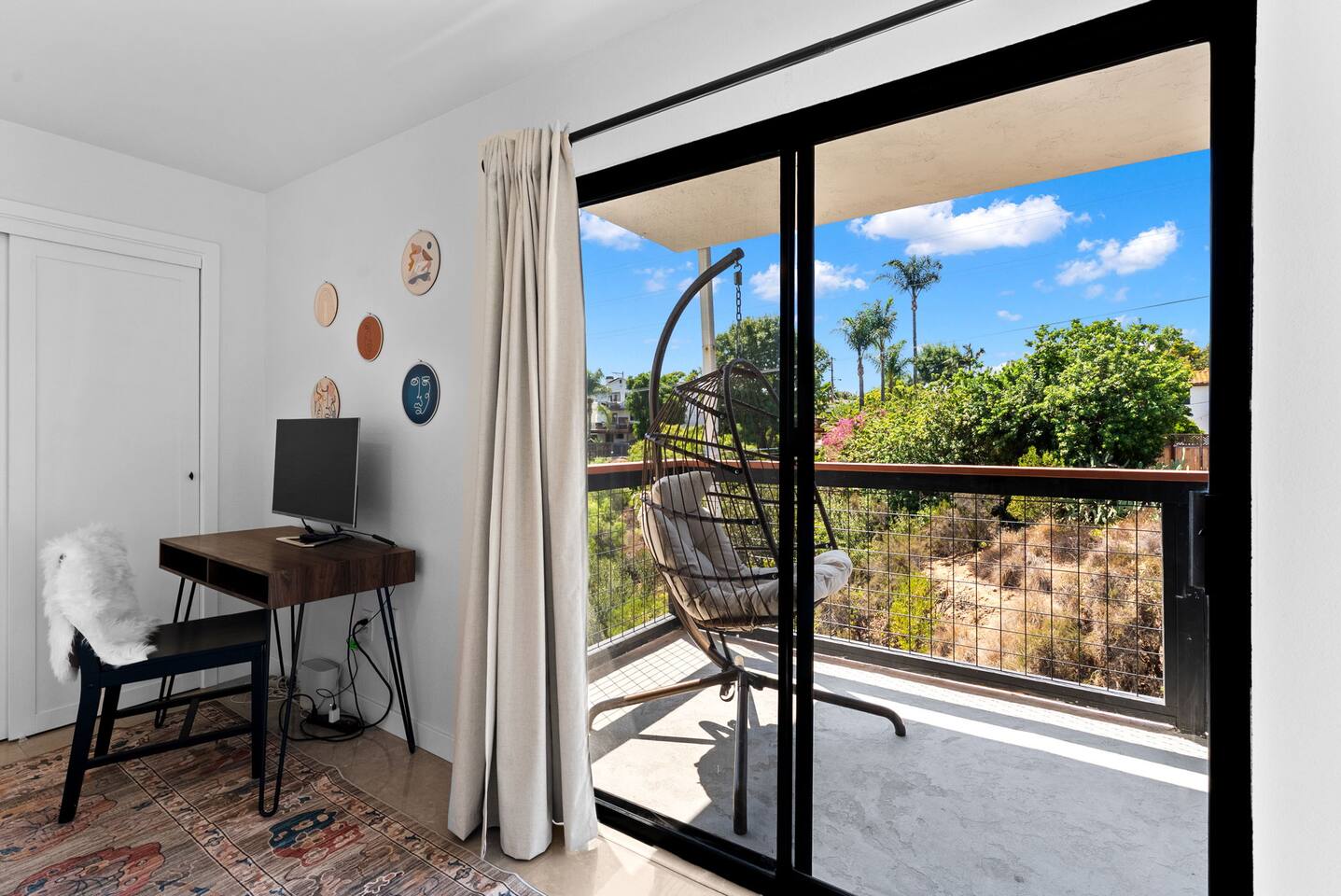 Welcome to your modern San Diego escape. This brand-newly renovated 2-bedroom flat in North Park combines high-end design with peaceful canyon views, offering the perfect balance of style and serenity. Inside, you’ll find a thoughtfully curated space featuring modern walnut kitchen cabinets, sleek stone floors, and professionally designed interiors that blend warmth and sophistication. The primary bedroom features a plush king bed, while the second bedroom offers a cozy queen—perfect for couples, friends, or small families traveling together. The living room also includes a comfortable sofa bed to accommodate additional guests. Step outside to your private balcony and unwind in the hanging chair, sip coffee at the bistro table for two, or sink into the Adirondack chairs while taking in sweeping canyon views. It’s your personal perch in nature—ideal for morning meditation, reading, or a glass of wine at sunset. Though you’re tucked away on a quiet, tree-lined street, you’re just a short drive to the freeway and all that San Diego has to offer. From beaches and Balboa Park to downtown hotspots and the vibrant restaurants and breweries of North Park, everything is within easy reach. Whether you’re here for a weekend getaway or an extended stay, this hidden gem is the perfect home base for your San Diego adventure.