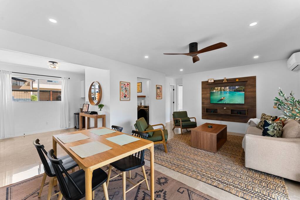 Inside, you’ll find a thoughtfully curated space featuring modern walnut kitchen cabinets, sleek stone floors, and professionally designed interiors that blend warmth and sophistication. The primary bedroom features a plush king bed, while the second bedroom offers a cozy queen—perfect for couples, friends, or small families traveling together. The living room also includes a comfortable sofa bed to accommodate additional guests. Step outside to your private balcony and unwind in the hanging chair, sip coffee at the bistro table for two, or sink into the Adirondack chairs while taking in sweeping canyon views. It’s your personal perch in nature—ideal for morning meditation, reading, or a glass of wine at sunset. Though you’re tucked away on a quiet, tree-lined street, you’re just a short drive to the freeway and all that San Diego has to offer. From beaches and Balboa Park to downtown hotspots and the vibrant restaurants and breweries of North Park, everything is within easy reach. Whether you’re here for a weekend getaway or an extended stay, this hidden gem is the perfect home base for your San Diego adventure.