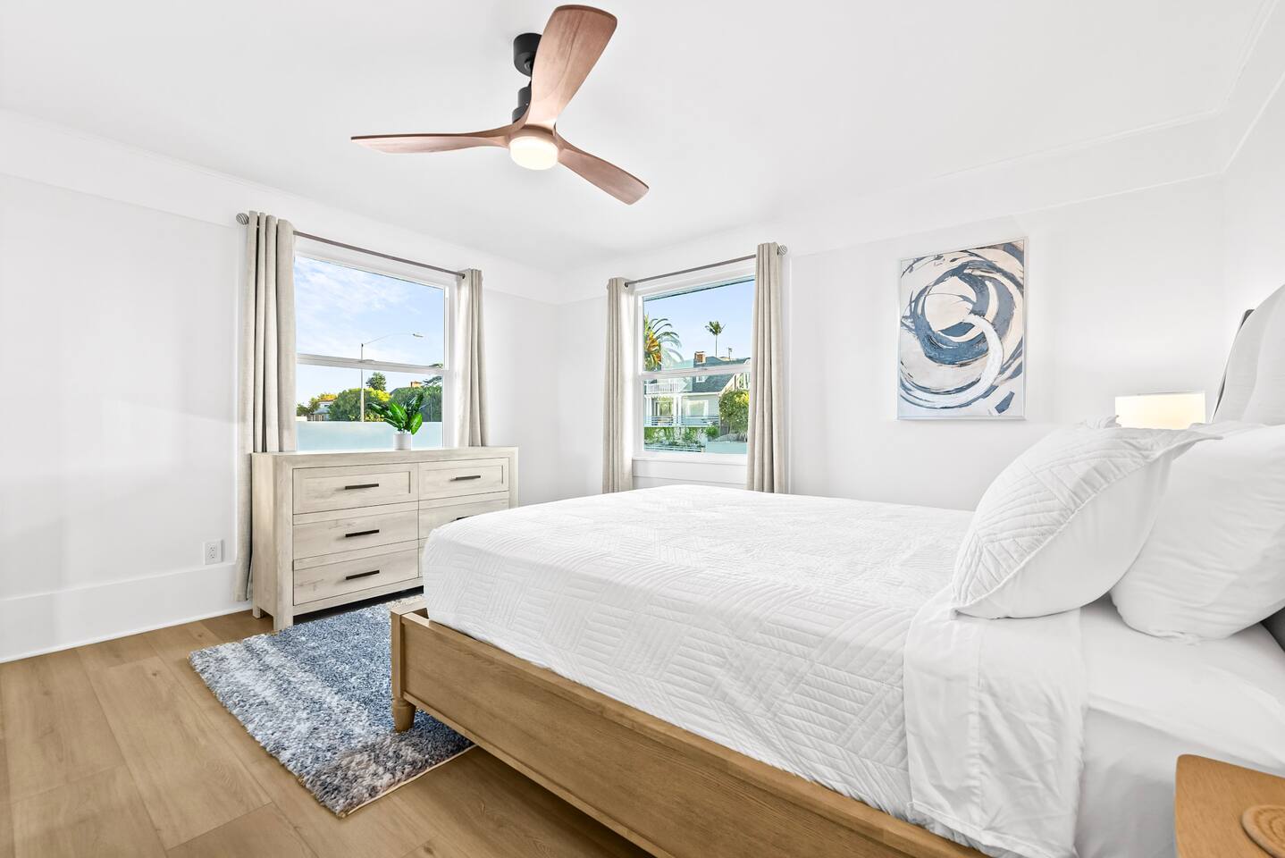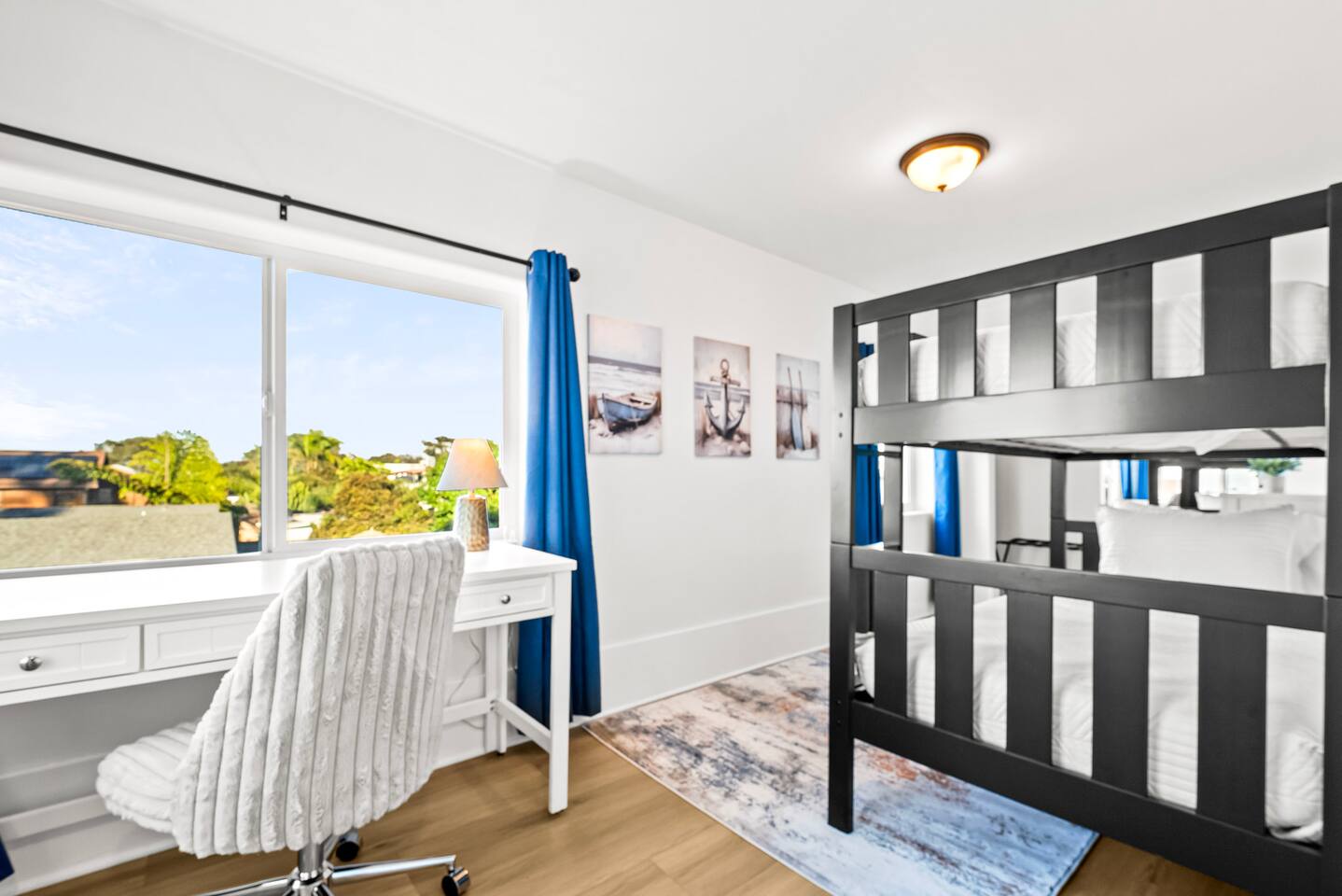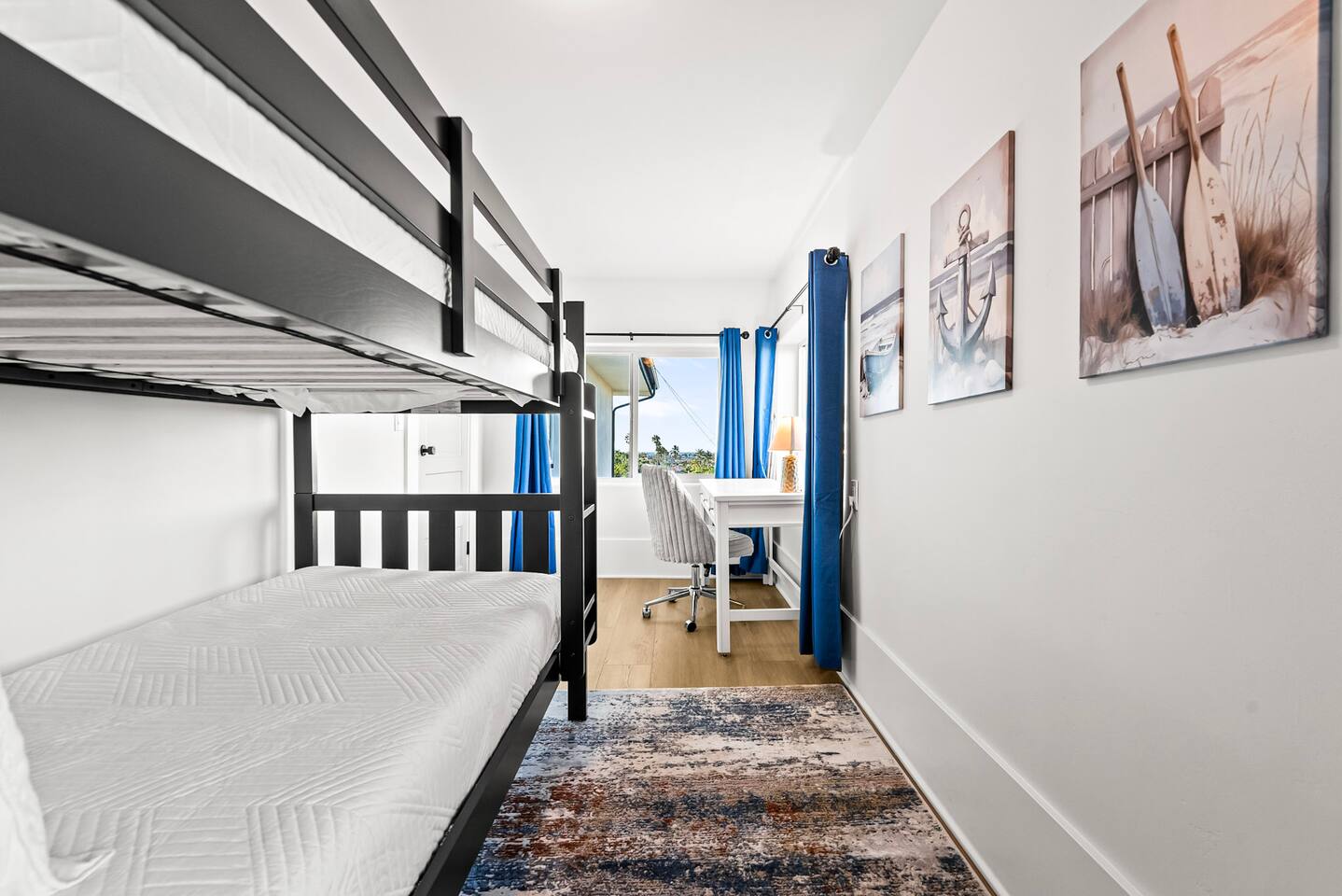 Vista Voltaire by Coastline Vacation Rentals *New Listing* Check out our reviews for our other homes! ⭐️ ⭐️ ⭐️ ⭐️ ⭐️ Just steps from the surf in vibrant Ocean Beach, this completely reimagined 2,448 sq. ft. residence offers the rare experience of entering a brand-new model home — yet with all the warmth and ease of a true coastal retreat. Renovated down to the studs, every material, finish, and detail was intentionally selected to create a luxurious haven with sweeping ocean views that frame your day from sunrise to sunset. Mornings begin with soft coastal light streaming through picture windows as you sip coffee and watch surfers carve the break below. Evenings bring golden skies, slow family meals in the banquet-style dining area, and SeaWorld’s nightly fireworks glimmering over the Pacific — a magical, exclusive backdrop for your stay. The home features five spacious bedrooms and three full baths, offering ample privacy and flexibility for families, multigenerational travel, group getaways, or remote-work stays. A private lower-level suite with its own entrance provides a quiet, independent space perfect for grandparents, teens, or anyone seeking extra comfort. Outdoors, you’ll enjoy the peace of a fully fenced yard along with the rare coastal luxury of both garage and driveway parking — an invaluable convenience in this beachside community. And while the home feels tucked away in an upscale and serene pocket of OB, you’re still minutes from iconic surf breaks, the pier, vibrant restaurants, boutique shops, Seaworld, Sunset Cliffs, Liberty Station, and everything that makes San Diego unforgettable. Bedroom Layout: - Bedroom 1 (Upstairs): King suite with ocean views, ensuite spa-style bath, walk-in closet (ideal for a pack ’n play), built-in laundry area, and blackout shades - Bedroom 2 (Upstairs): Queen - Bedroom 3 (Upstairs): Queen - Bedroom 4 (Upstairs): Bunk room with two twins and a desk overlooking the ocean - Bedroom 5 (Downstairs): Queen, perfect for guests avoiding stairs with a full bath just outside the door This extraordinary home blends elevated design, luxurious comfort, and the best of coastal San Diego living — a space where style meets serenity and where unforgettable memories are effortlessly made. Guest access You will have the entire property to yourselves, with no shared spaces.