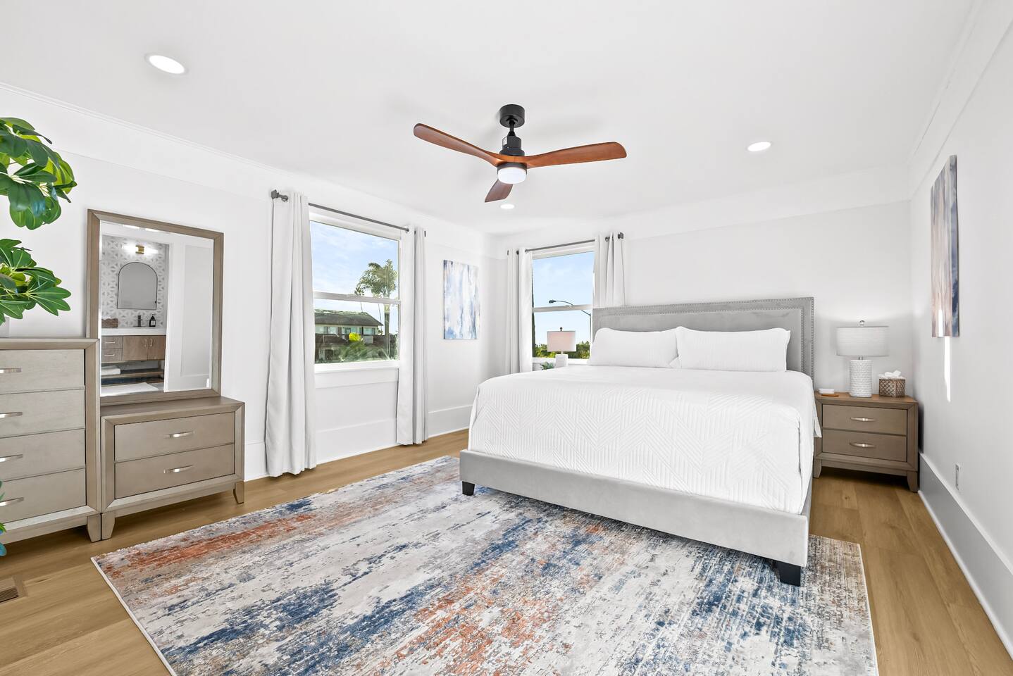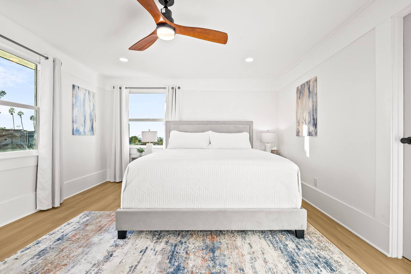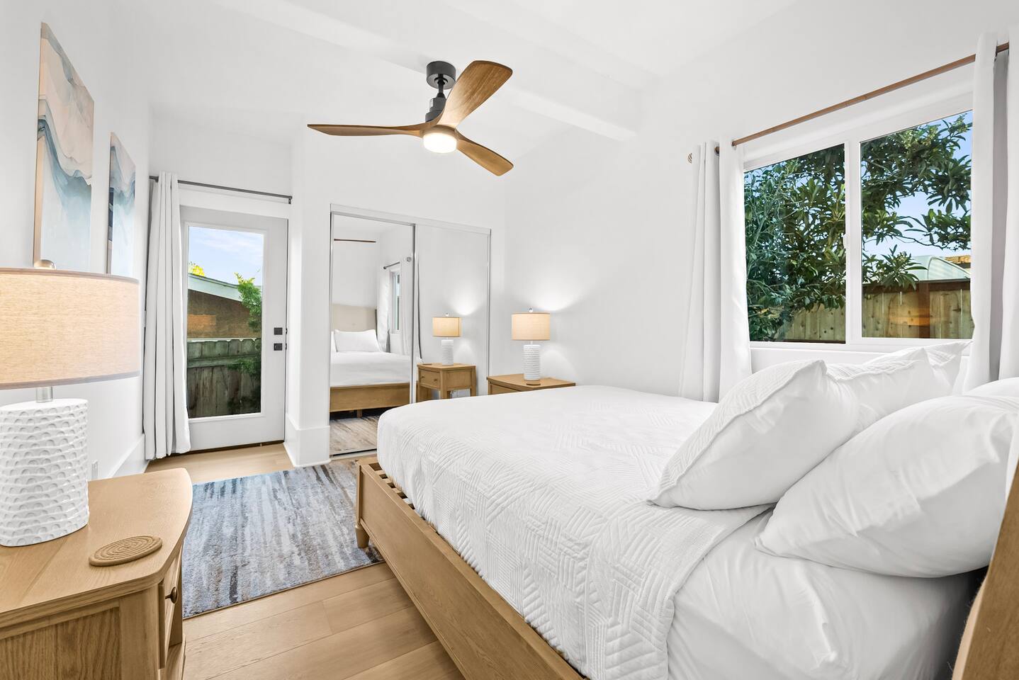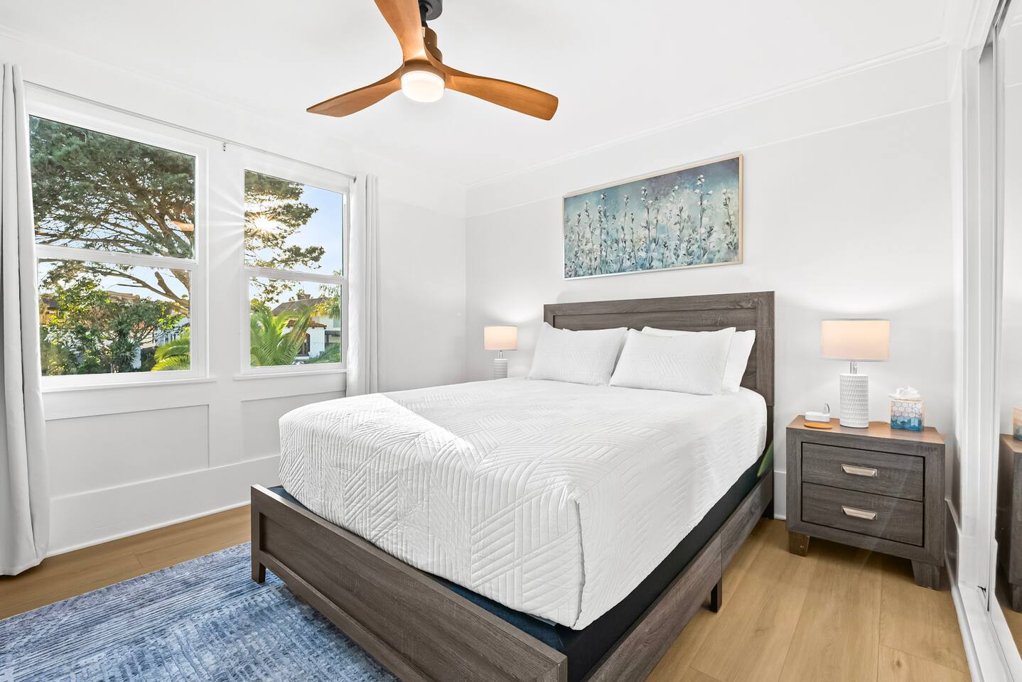 Vista Voltaire by Coastline Vacation Rentals *New Listing* Check out our reviews for our other homes! ⭐️ ⭐️ ⭐️ ⭐️ ⭐️ Just steps from the surf in vibrant Ocean Beach, this completely reimagined 2,448 sq. ft. residence offers the rare experience of entering a brand-new model home — yet with all the warmth and ease of a true coastal retreat. Renovated down to the studs, every material, finish, and detail was intentionally selected to create a luxurious haven with sweeping ocean views that frame your day from sunrise to sunset. Mornings begin with soft coastal light streaming through picture windows as you sip coffee and watch surfers carve the break below. Evenings bring golden skies, slow family meals in the banquet-style dining area, and SeaWorld’s nightly fireworks glimmering over the Pacific — a magical, exclusive backdrop for your stay. The home features five spacious bedrooms and three full baths, offering ample privacy and flexibility for families, multigenerational travel, group getaways, or remote-work stays. A private lower-level suite with its own entrance provides a quiet, independent space perfect for grandparents, teens, or anyone seeking extra comfort. Outdoors, you’ll enjoy the peace of a fully fenced yard along with the rare coastal luxury of both garage and driveway parking — an invaluable convenience in this beachside community. And while the home feels tucked away in an upscale and serene pocket of OB, you’re still minutes from iconic surf breaks, the pier, vibrant restaurants, boutique shops, Seaworld, Sunset Cliffs, Liberty Station, and everything that makes San Diego unforgettable. Bedroom Layout: - Bedroom 1 (Upstairs): King suite with ocean views, ensuite spa-style bath, walk-in closet (ideal for a pack ’n play), built-in laundry area, and blackout shades - Bedroom 2 (Upstairs): Queen - Bedroom 3 (Upstairs): Queen - Bedroom 4 (Upstairs): Bunk room with two twins and a desk overlooking the ocean - Bedroom 5 (Downstairs): Queen, perfect for guests avoiding stairs with a full bath just outside the door This extraordinary home blends elevated design, luxurious comfort, and the best of coastal San Diego living — a space where style meets serenity and where unforgettable memories are effortlessly made. Guest access You will have the entire property to yourselves, with no shared spaces.