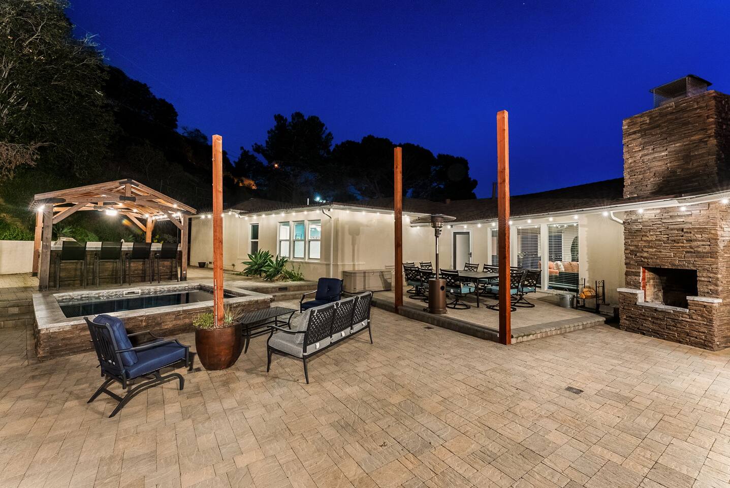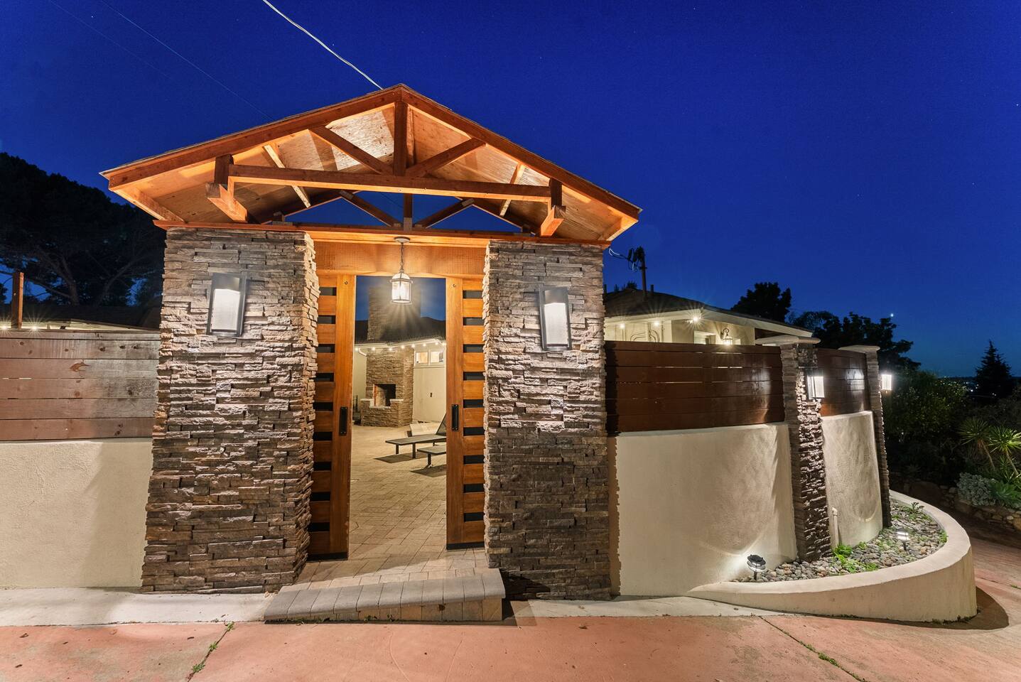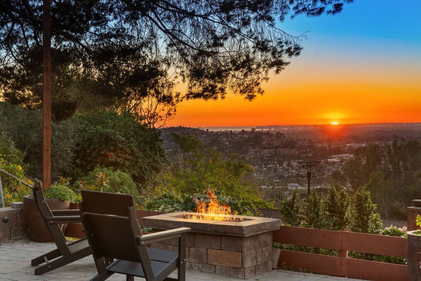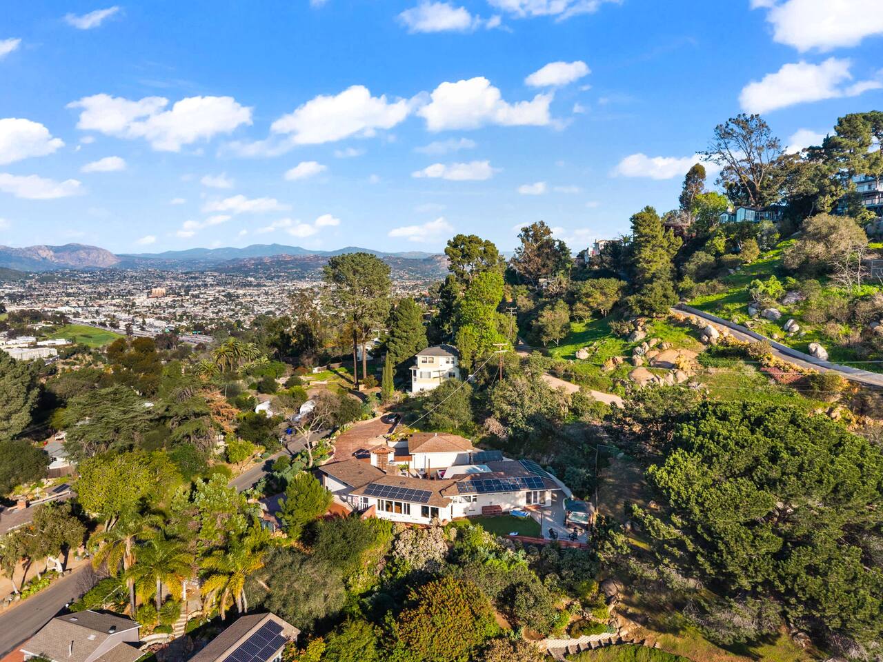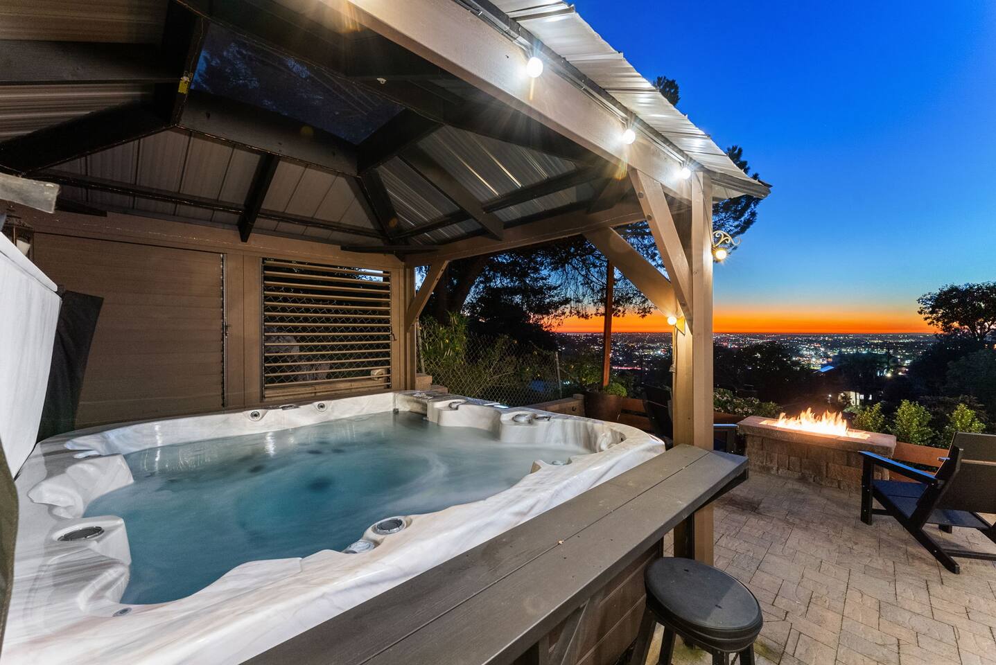 High above San Diego, where the city feels quieter and the views stretch all the way to the ocean on a clear day, this Mt. Helix retreat is designed for unforgettable family time. From the moment you arrive, life slows down. Mornings begin with coffee and sweeping views. Afternoons turn playful and sun-soaked. Evenings glow with firelight, warm water, and long conversations under the stars. The home offers two distinct outdoor spaces, each intentionally designed for a different kind of experience. The courtyard is the social heart of the home. Here you’ll find the refreshing dipping pool—perfect for cooling off on hot summer days—alongside the outdoor kitchen and dining area. Gather for meals, grill together, and wind down by the outdoor fireplace as the sky changes color. It’s an inviting, central space made for togetherness. The backyard is all about relaxing and taking in the view. Sink into the hot tub once the sun goes down or during cooler winter nights, sway in the hammock, or challenge each other to a game of cornhole. End the night around the view fire pit, watching the lights of San Diego sparkle below. Inside, the garage has been transformed into a full game room that’s a hit with both kids and adults. Settle in for movie nights with a projector and cozy seating (complete with a popcorn machine), test your skills with axe throwing, or rotate between mini pool, air hockey, and ping pong on the convertible game table. Board games round out the fun for rainy days or late-night laughs. The home is thoughtfully laid out to balance shared moments with privacy—ideal for families and multi-generational stays. Sleeping arrangements: Bedroom 1: King bed, twin pull-out sofa, crib tucked into the walk-in closet area, and private ensuite bathroom Bedroom 2: Queen bed with a full-size loft bed—perfect for kids Bedroom 3: King bed with private ensuite bathroom An additional full bathroom with a shower is located just off the kitchen and offers direct outdoor access, making it the perfect pool bath. Though the home feels private and tucked away at the top of Mt. Helix, you’re less than five minutes from the freeway—making it easy to reach beaches, attractions, and everything San Diego has to offer. This home was made for family fun—sunny days, cozy nights, and memories that last long after checkout.
