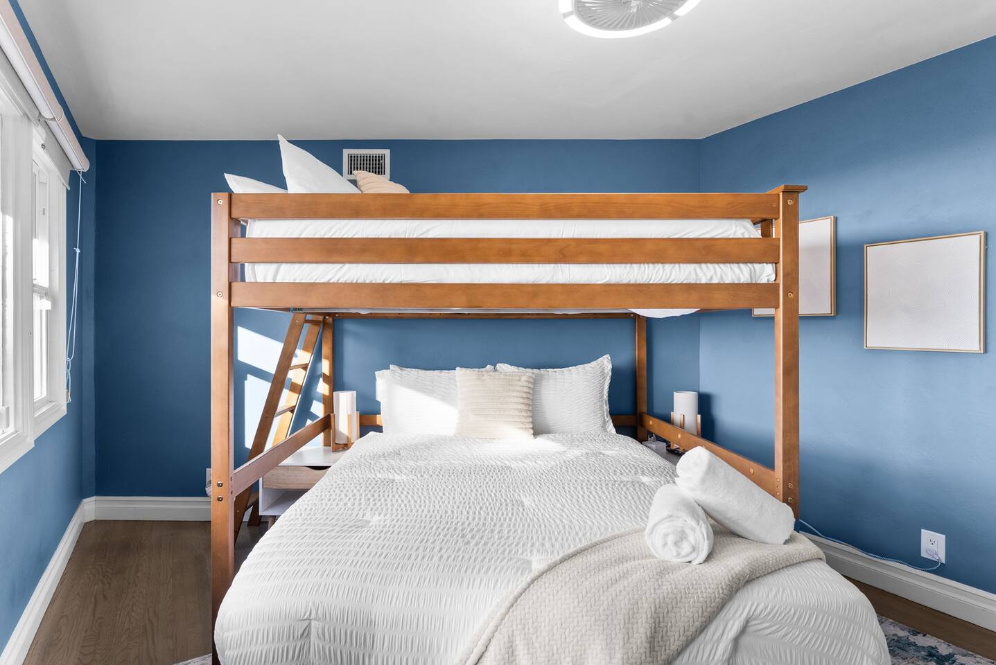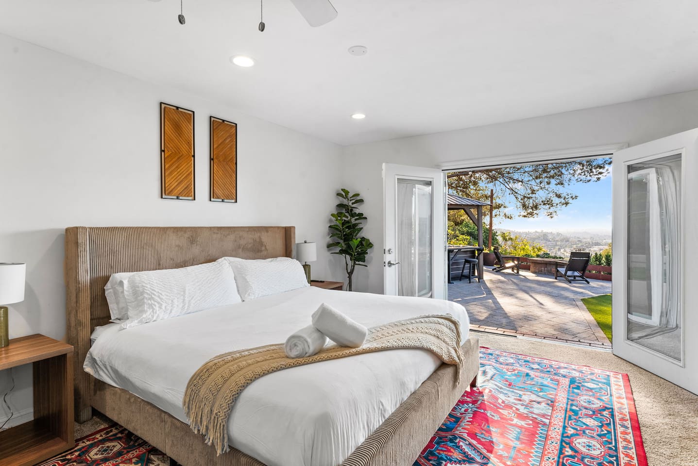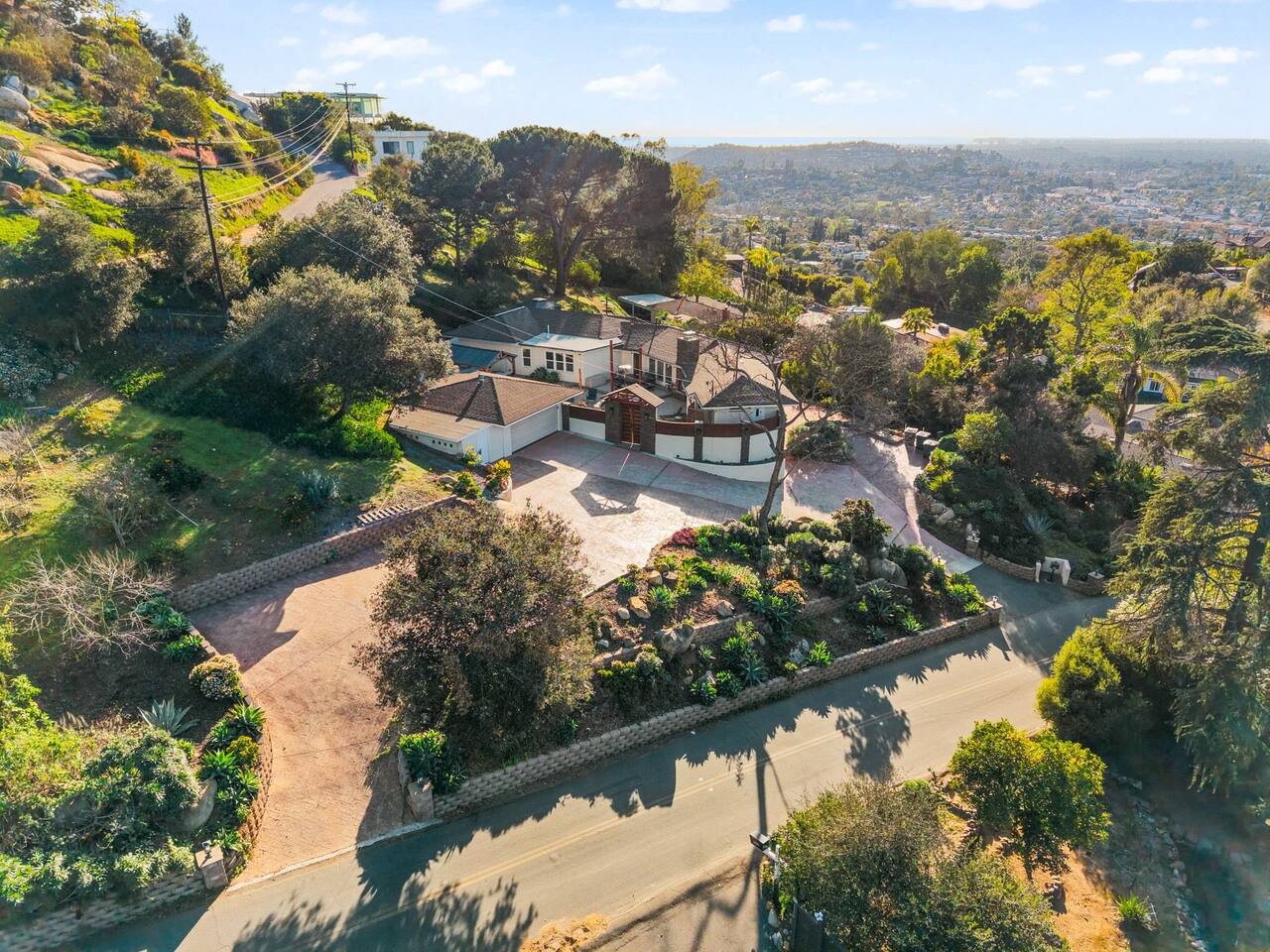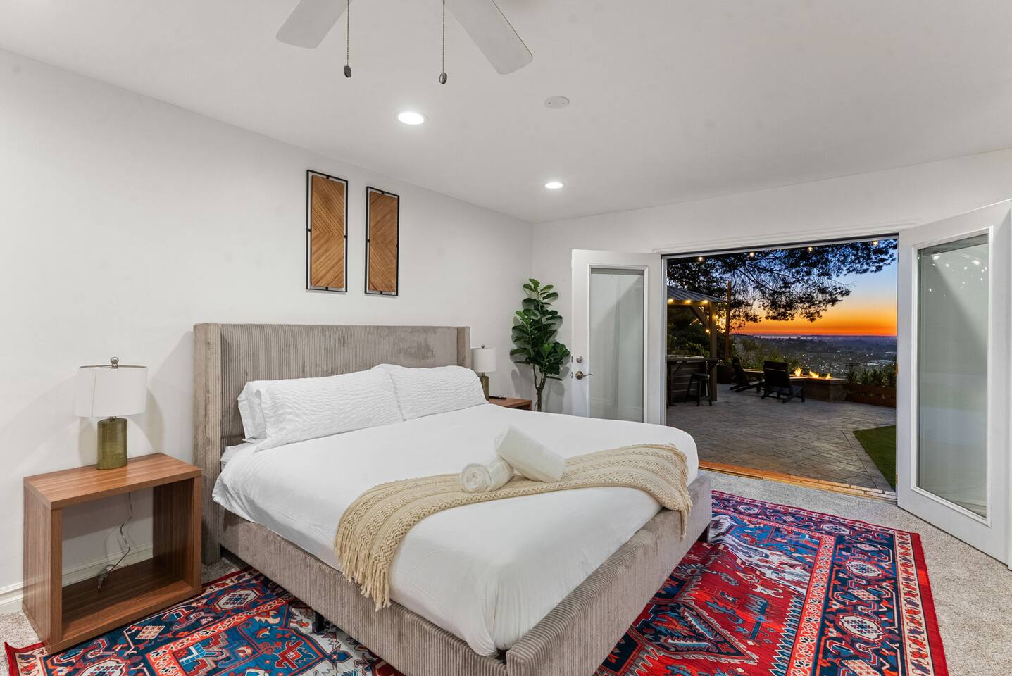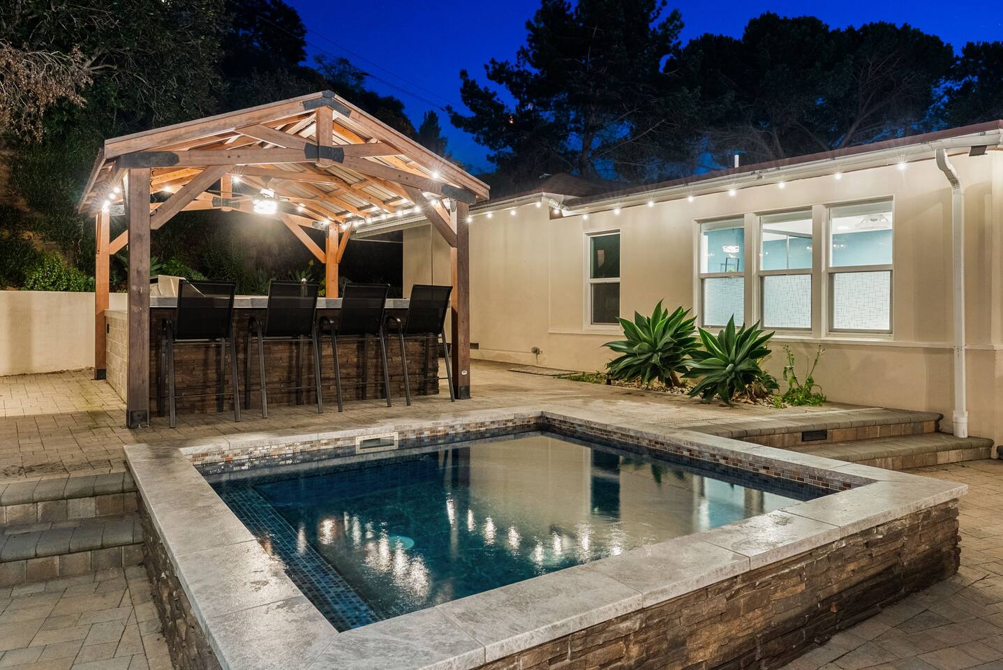 High above San Diego, where the city feels quieter and the views stretch all the way to the ocean on a clear day, this Mt. Helix retreat is designed for unforgettable family time. From the moment you arrive, life slows down. Mornings begin with coffee and sweeping views. Afternoons turn playful and sun-soaked. Evenings glow with firelight, warm water, and long conversations under the stars. The home offers two distinct outdoor spaces, each intentionally designed for a different kind of experience. The courtyard is the social heart of the home. Here you’ll find the refreshing dipping pool—perfect for cooling off on hot summer days—alongside the outdoor kitchen and dining area. Gather for meals, grill together, and wind down by the outdoor fireplace as the sky changes color. It’s an inviting, central space made for togetherness. The backyard is all about relaxing and taking in the view. Sink into the hot tub once the sun goes down or during cooler winter nights, sway in the hammock, or challenge each other to a game of cornhole. End the night around the view fire pit, watching the lights of San Diego sparkle below. Inside, the garage has been transformed into a full game room that’s a hit with both kids and adults. Settle in for movie nights with a projector and cozy seating (complete with a popcorn machine), test your skills with axe throwing, or rotate between mini pool, air hockey, and ping pong on the convertible game table. Board games round out the fun for rainy days or late-night laughs. The home is thoughtfully laid out to balance shared moments with privacy—ideal for families and multi-generational stays. Sleeping arrangements: Bedroom 1: King bed, twin pull-out sofa, crib tucked into the walk-in closet area, and private ensuite bathroom Bedroom 2: Queen bed with a full-size loft bed—perfect for kids Bedroom 3: King bed with private ensuite bathroom An additional full bathroom with a shower is located just off the kitchen and offers direct outdoor access, making it the perfect pool bath. Though the home feels private and tucked away at the top of Mt. Helix, you’re less than five minutes from the freeway—making it easy to reach beaches, attractions, and everything San Diego has to offer. This home was made for family fun—sunny days, cozy nights, and memories that last long after checkout.